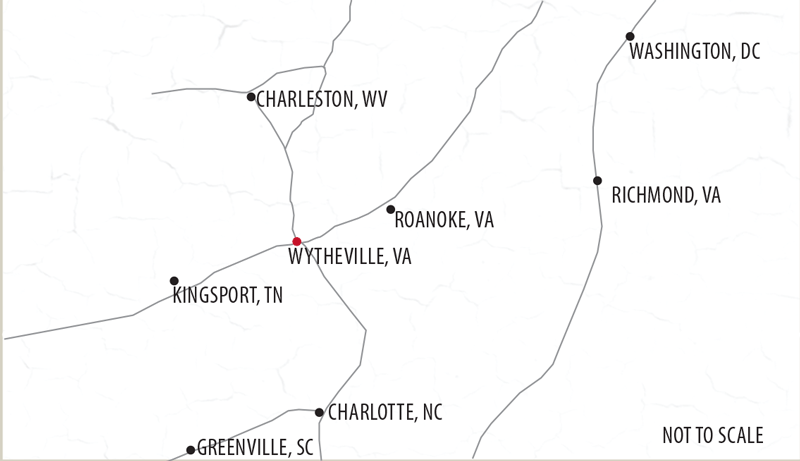 From I-81: Take Exit 73 (US 11S/Wytheville) onto US 11/E. Main Street. Take the first right onto Lithia Road. Continue 1.5 mi. (road becomes Community Blvd.) and turn left into parking lot for Wytheville Meeting Center.