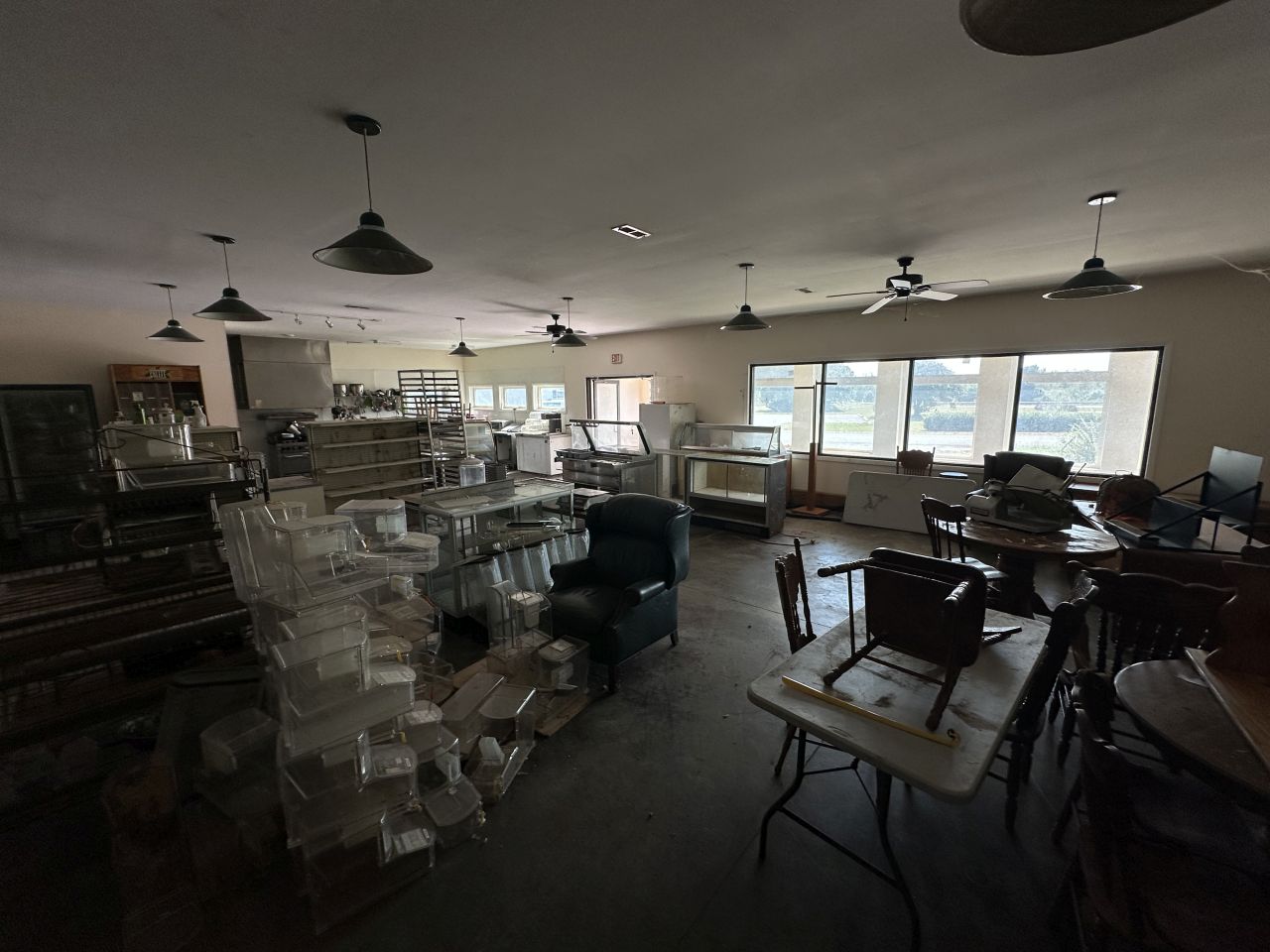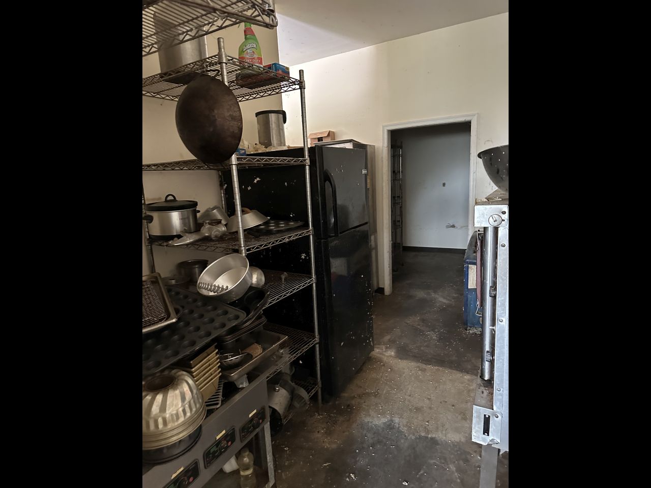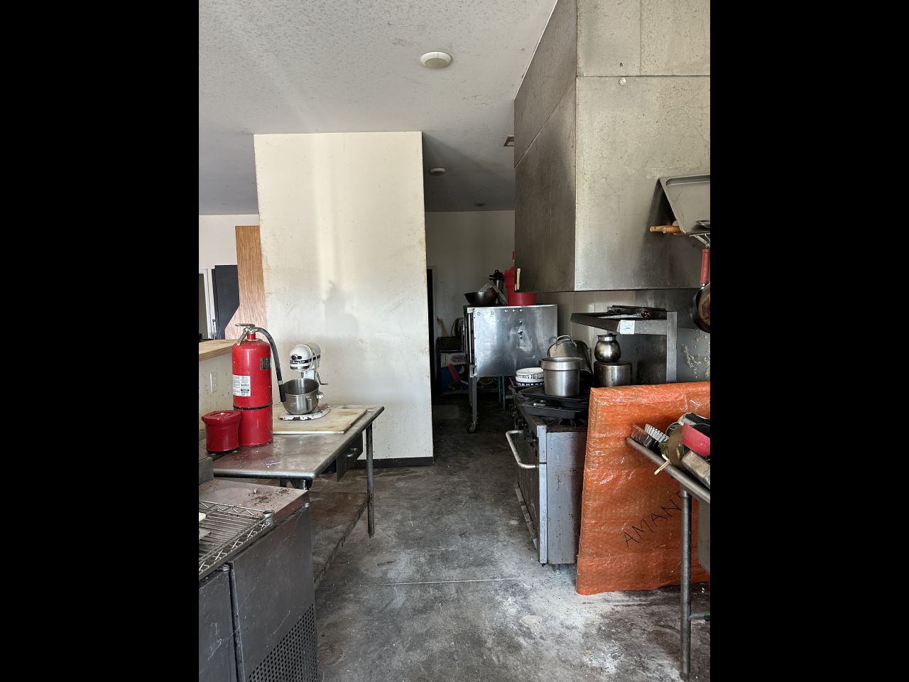 - Existing retail and restaurant structure with shelves, fixtures, and kitchen assets in place