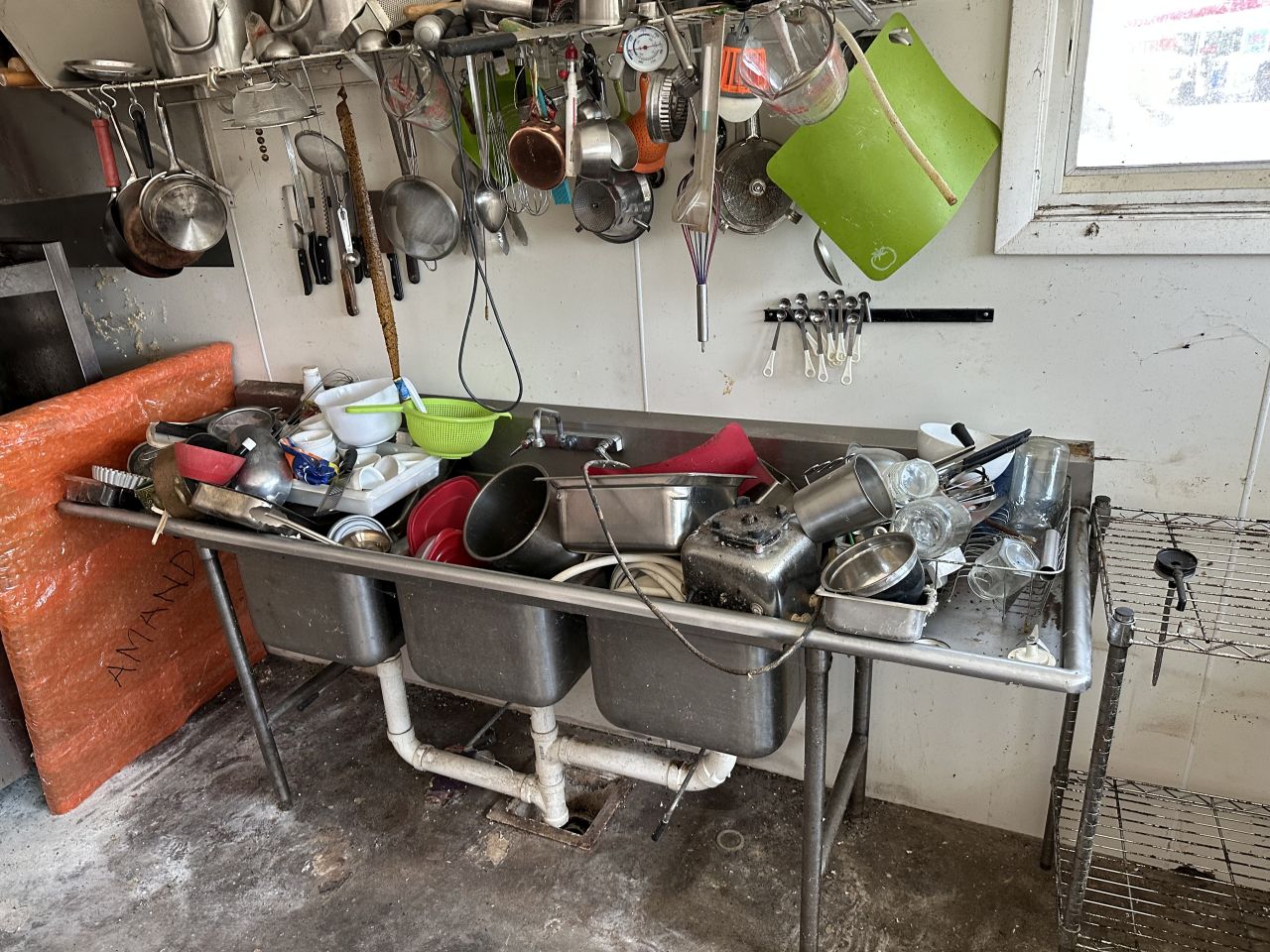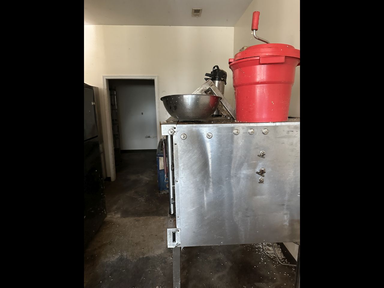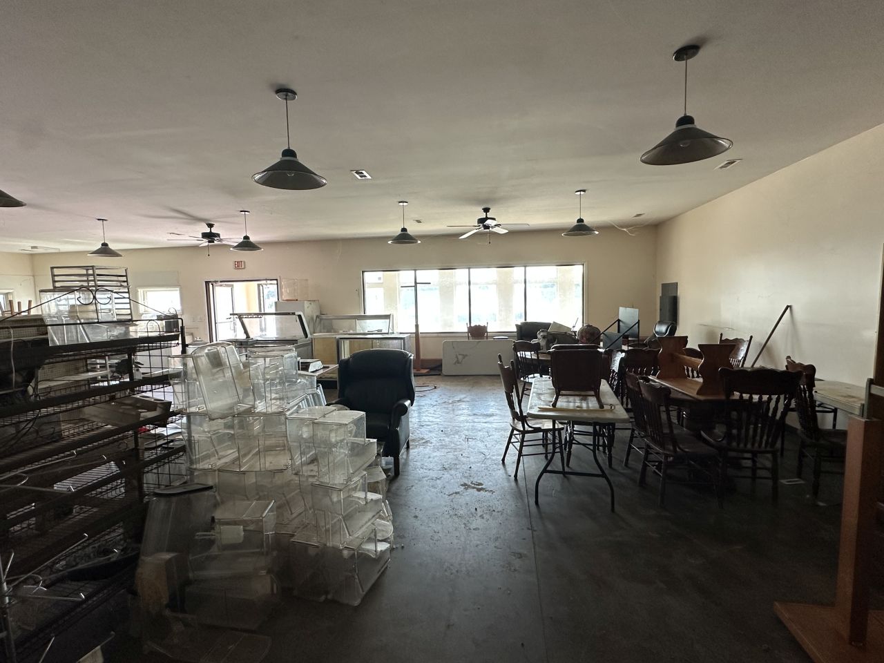 - Existing retail and restaurant structure with shelves, fixtures, and kitchen assets in place