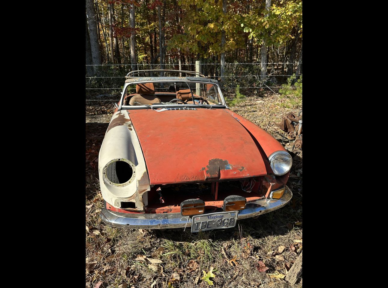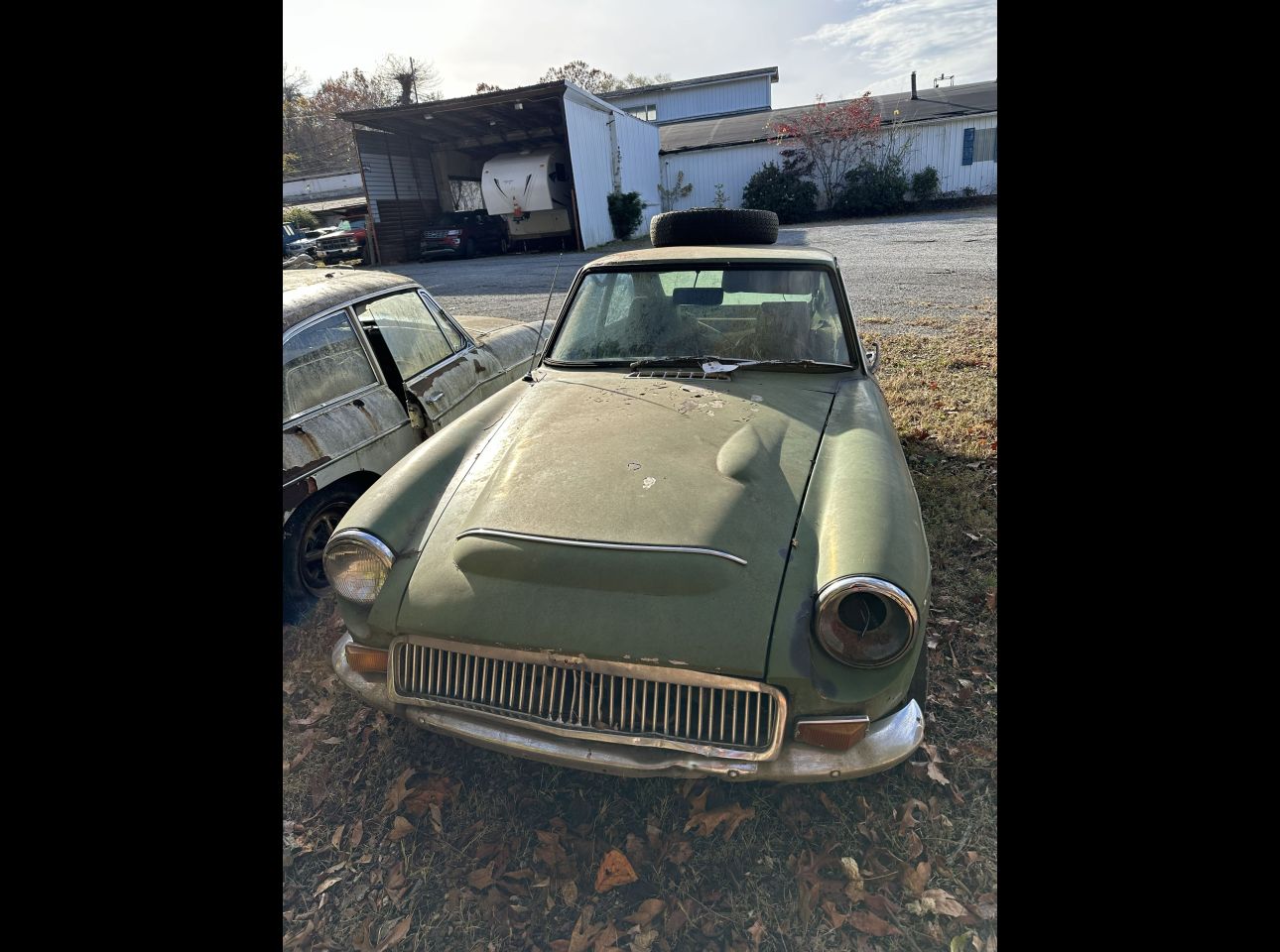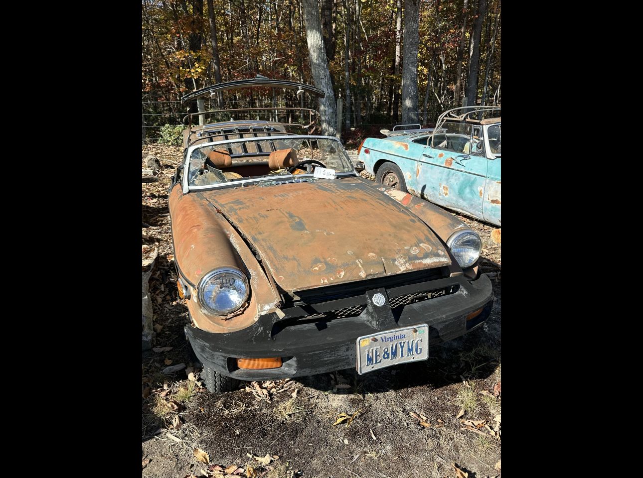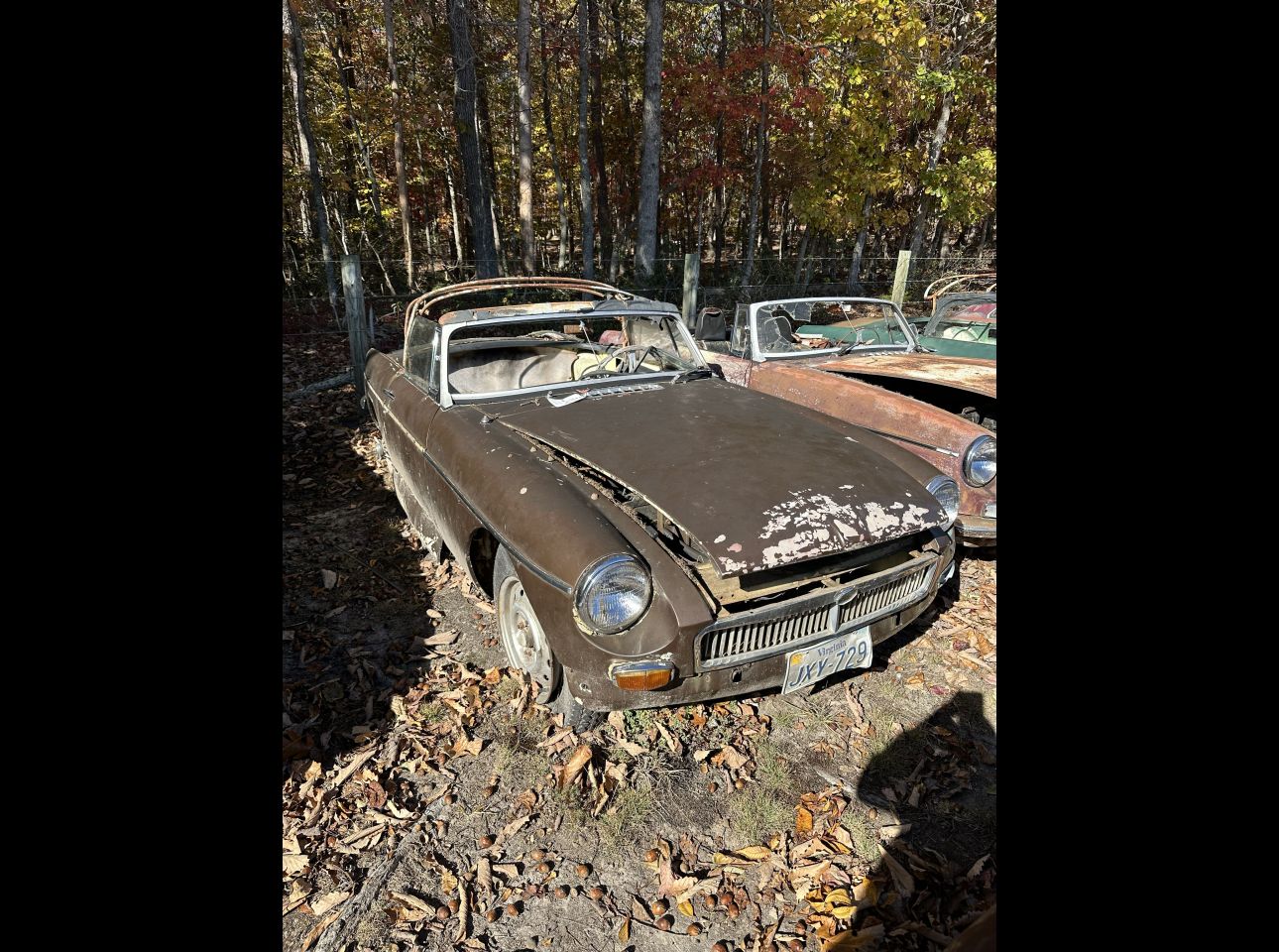 Brown MGB in fair condition. Includes motor and transmission, not running. No title. Located in Troutville.