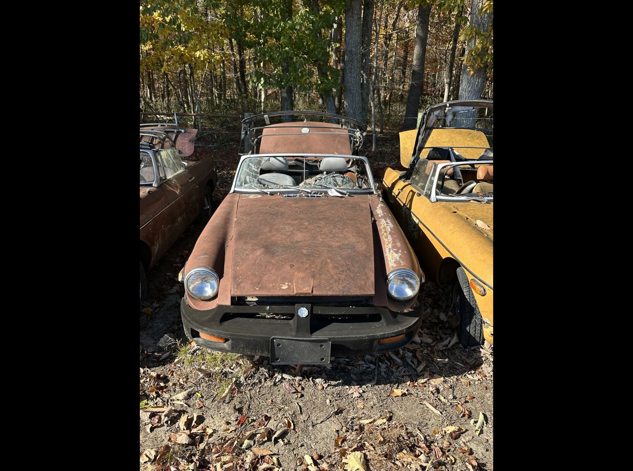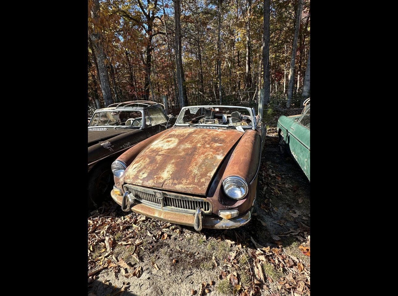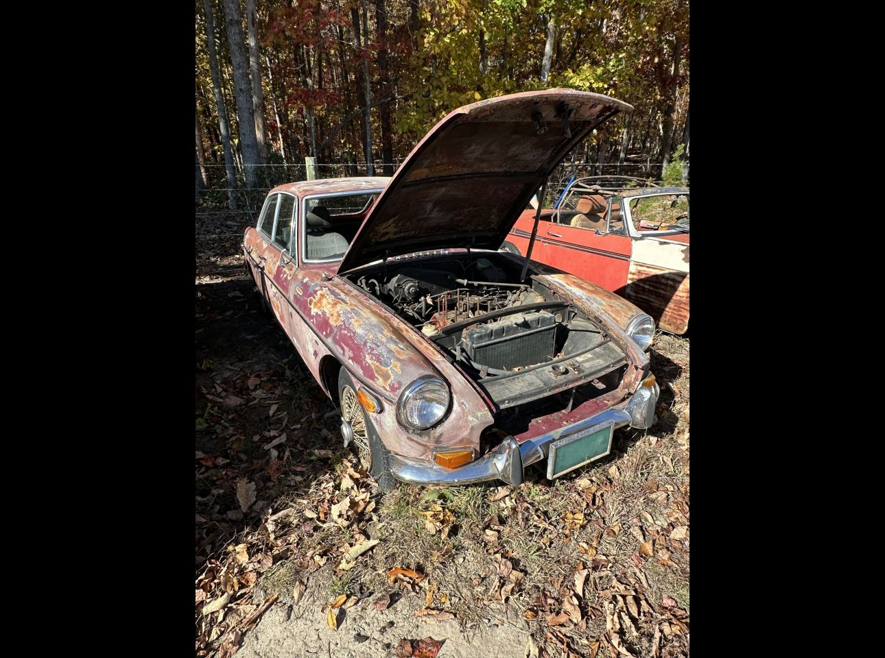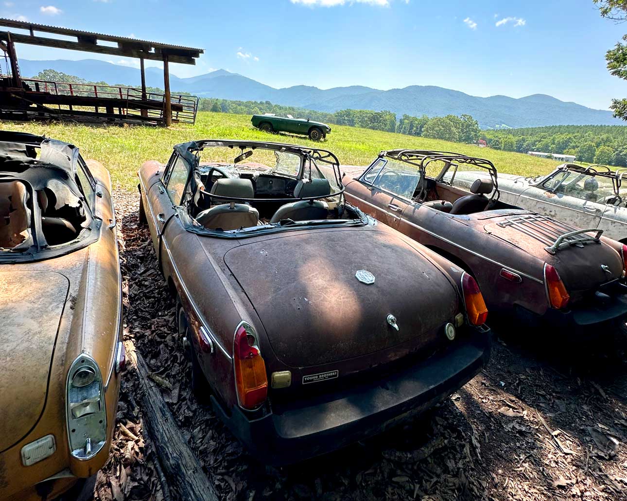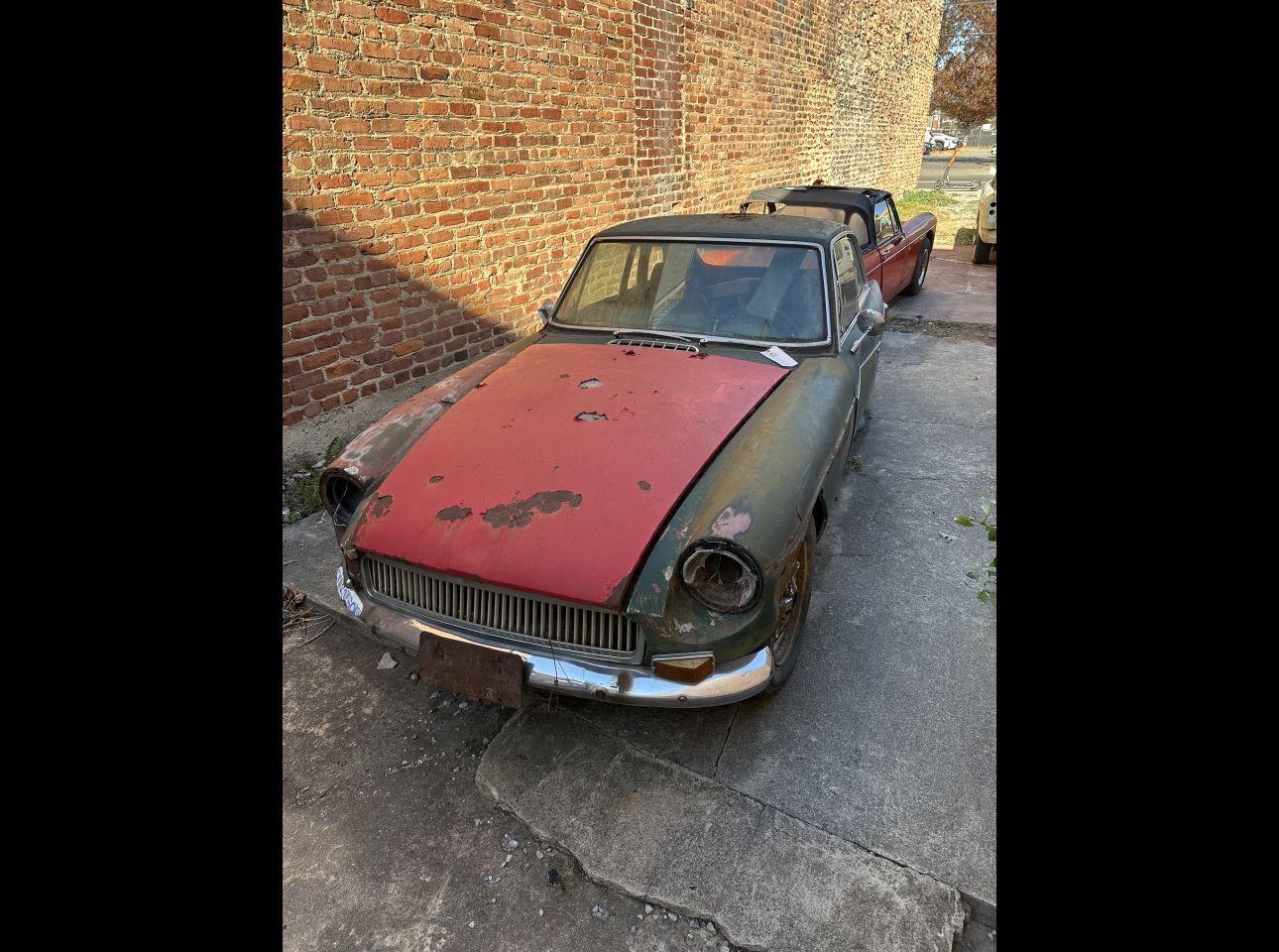 Brown MGB in fair condition. Includes motor and transmission, not running. No title. Located in Troutville.