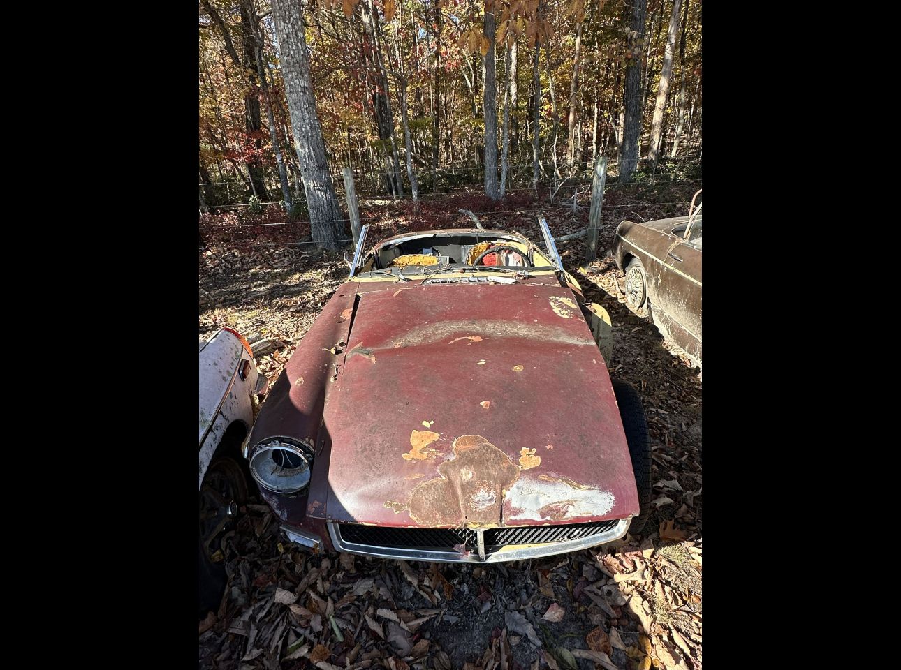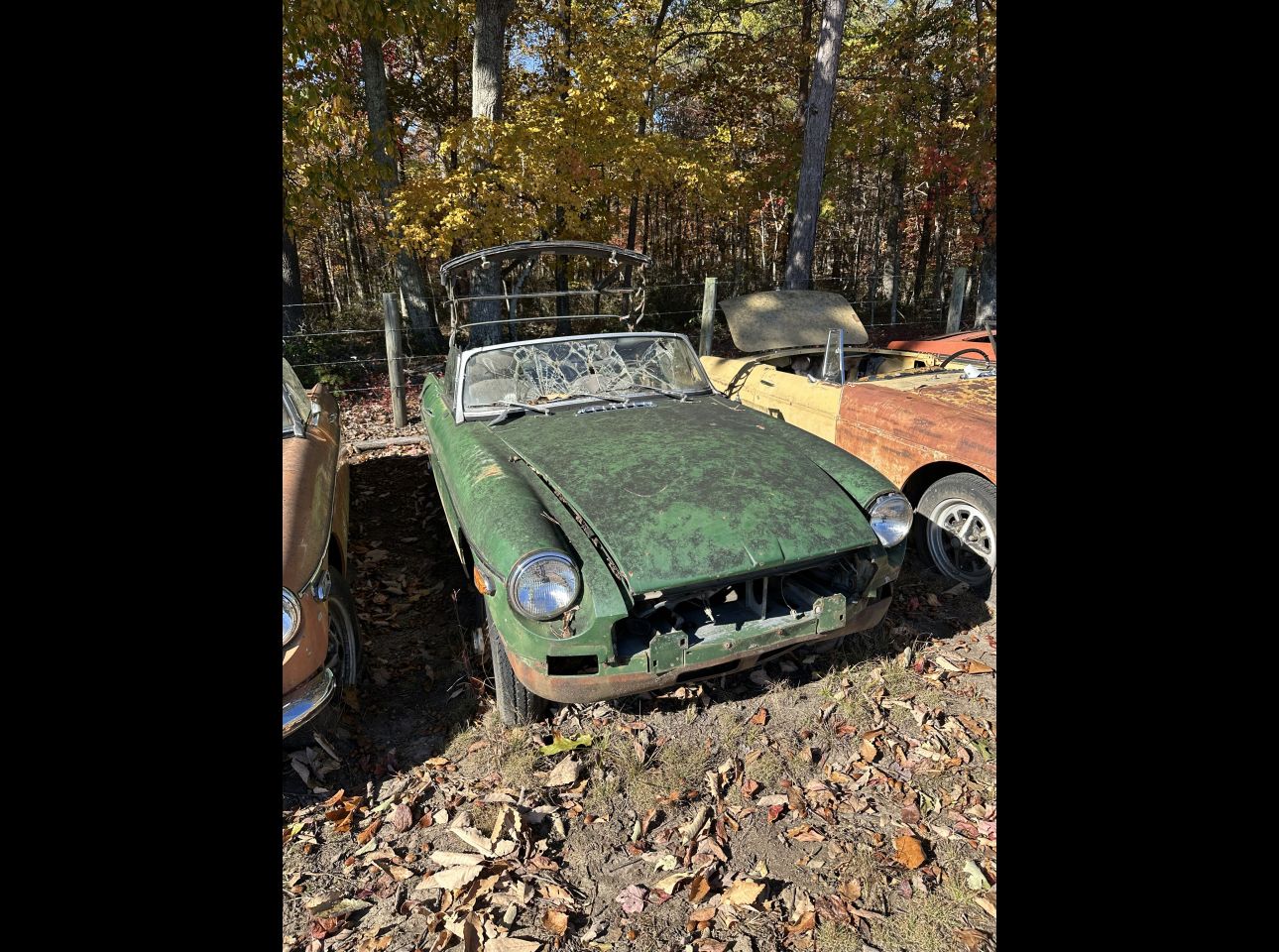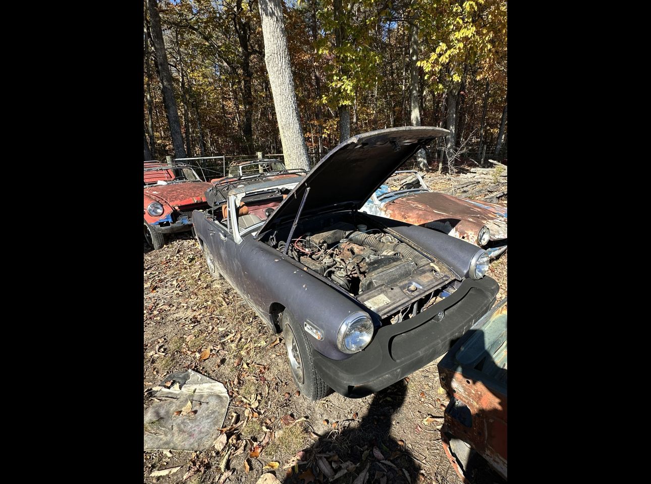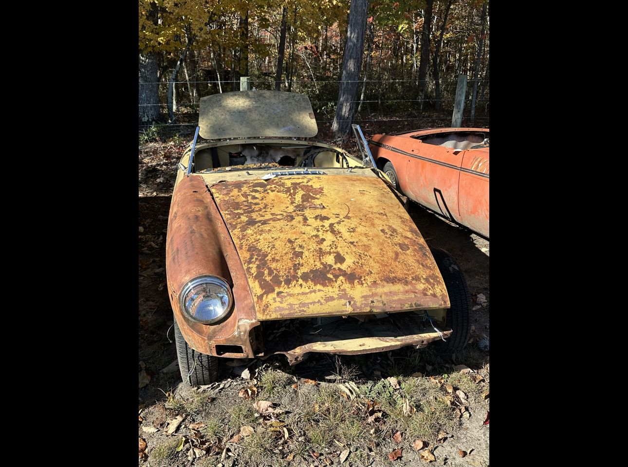 Brown MGB in fair condition. Includes motor and transmission, not running. No title. Located in Troutville.