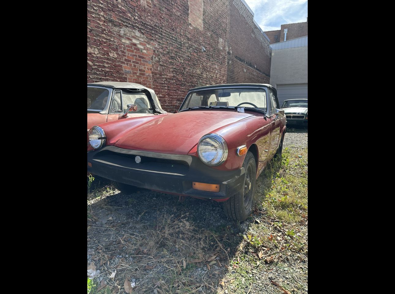 1979 MG Midget in not running condition. Comes complete with title, motor, and transmission. Finished in red, this convertible embodies classic late-’70s MG styling. Located at the Salem Ave location.