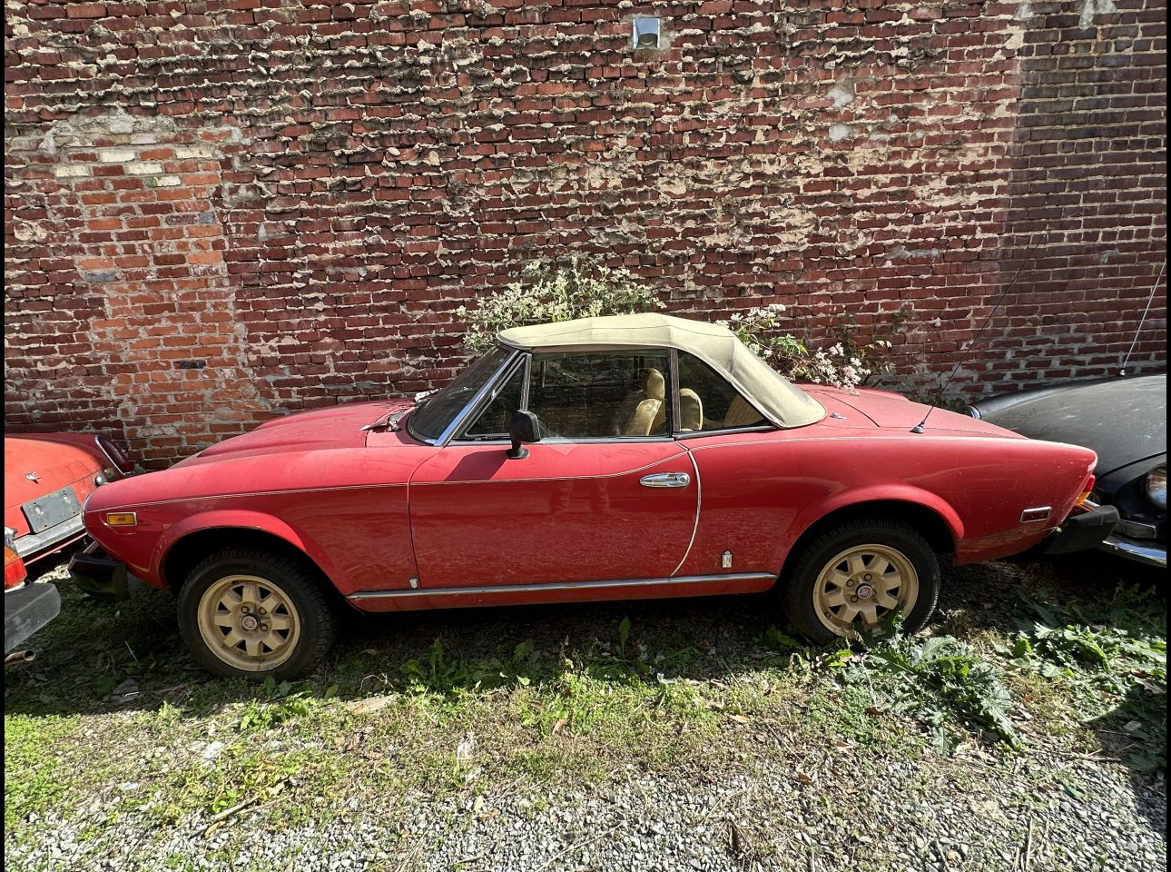 1981 Fiat drop-top in fair condition. No motor, great interior, and transmission but not currently running. No title. An appealing Italian classic for restoration enthusiasts. VIN: 179298. Located at the Salem Ave location.