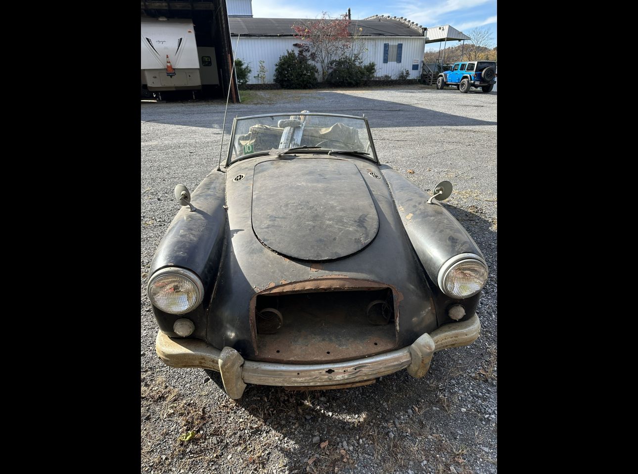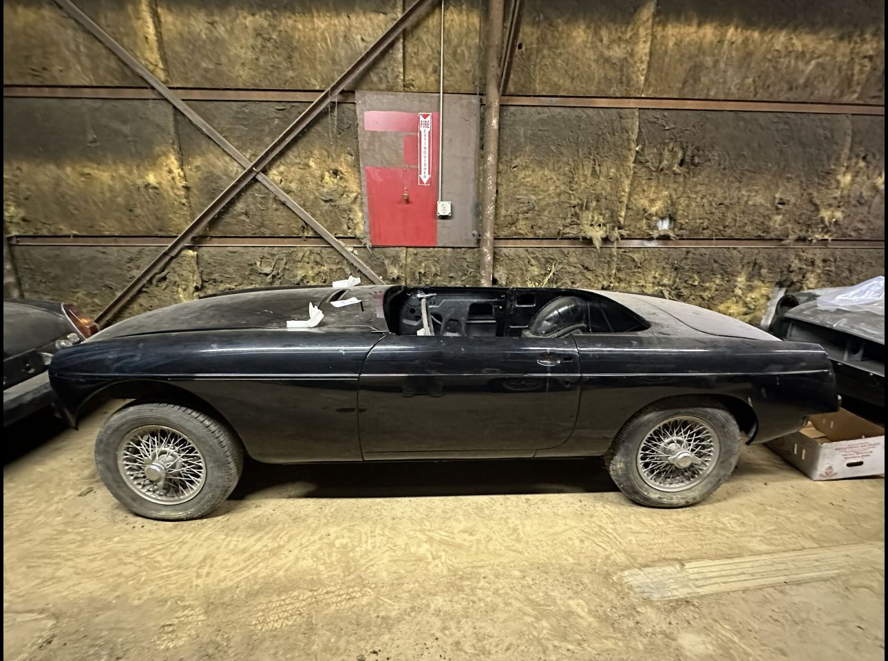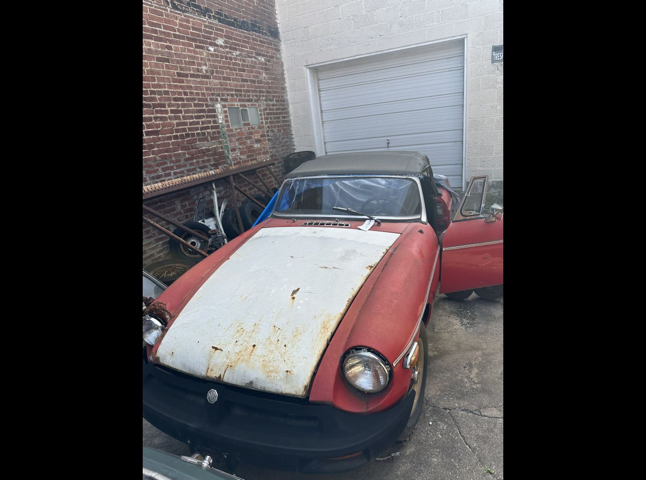 1955-61 MGA coupe in fair condition. Lacks motor, transmission, and title. Not running. Located in Montvale.