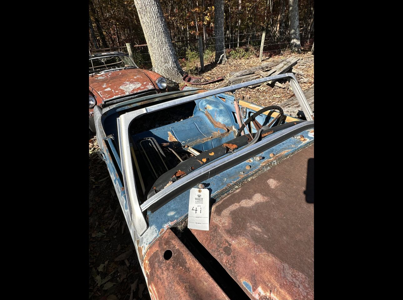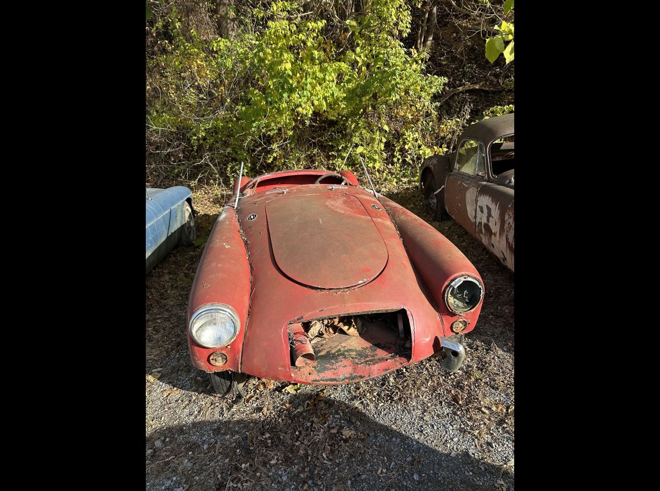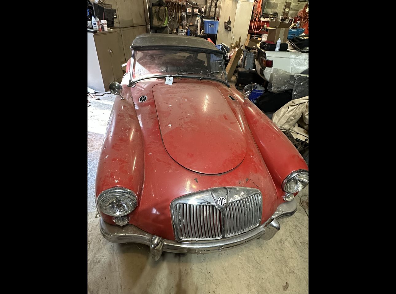 1955-61 MGA coupe in fair condition. Lacks motor, transmission, and title. Not running. Located in Montvale.