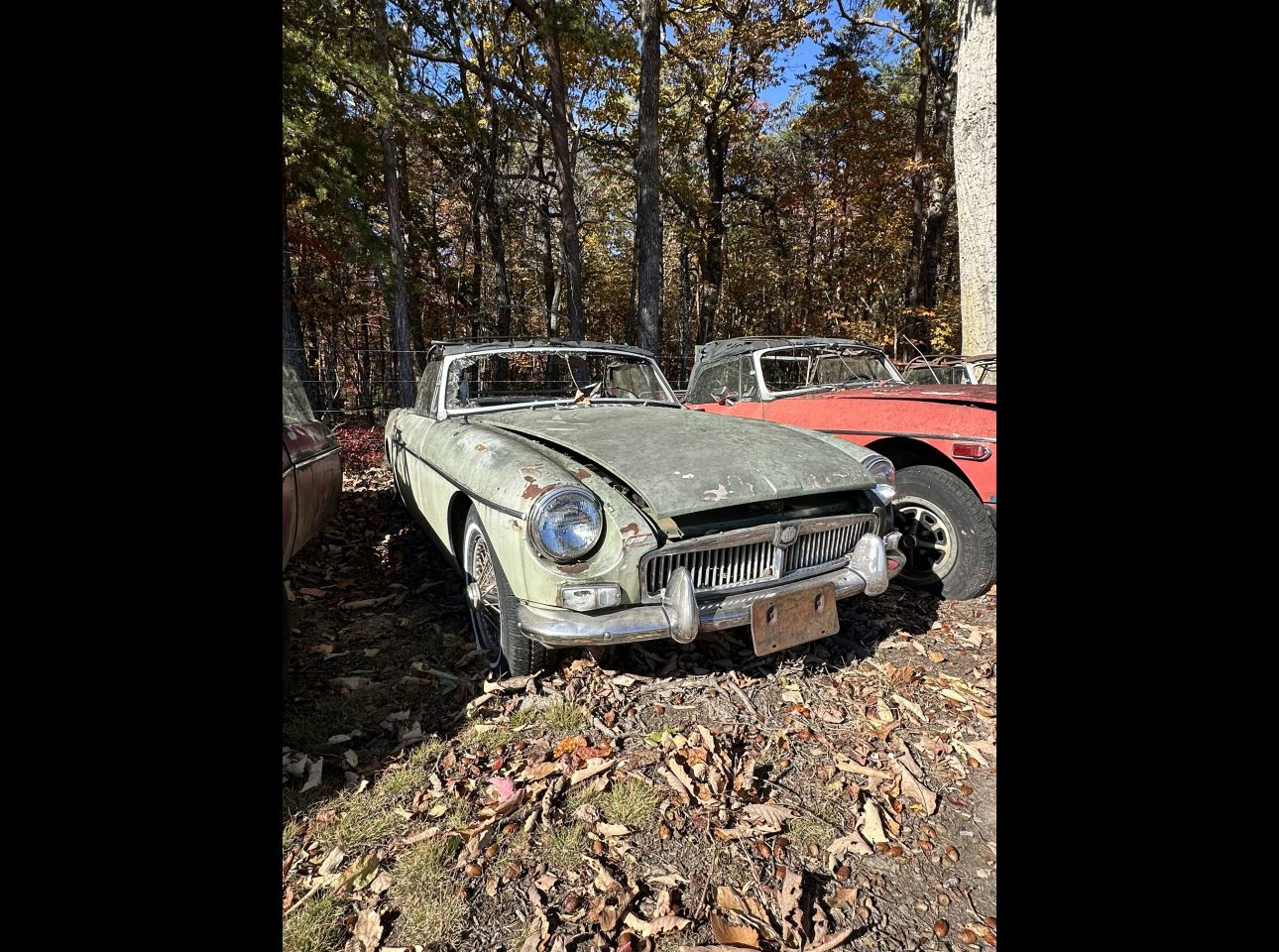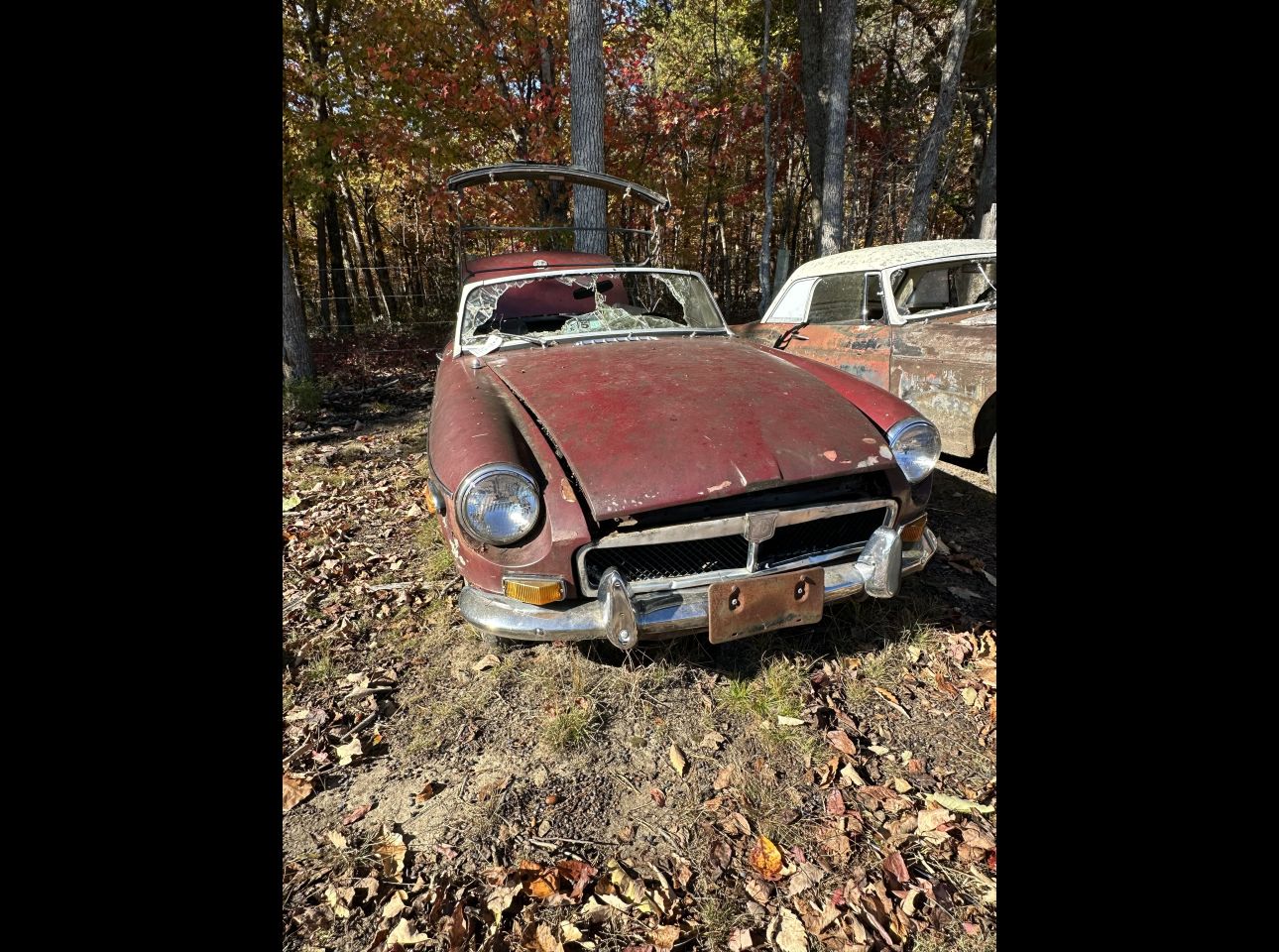 1965-67 MGB in fair condition. Includes motor and transmission but not running. No title. Solid chrome-bumper MG project. Located in Montvale.