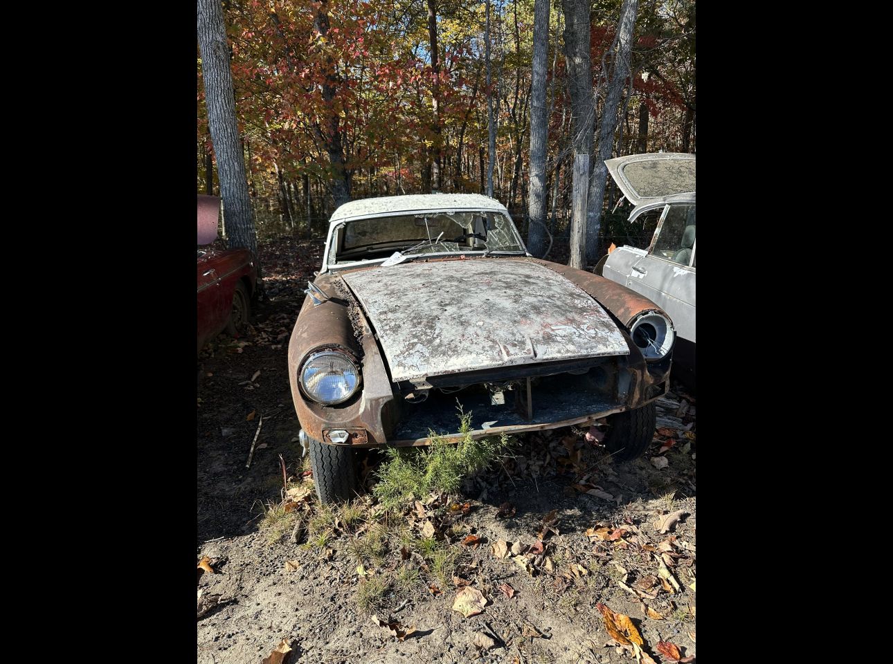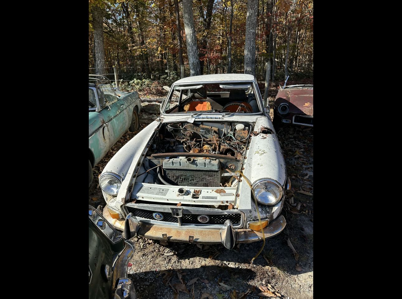White MGB in fair condition. Equipped with title, motor, and transmission but not running. VIN: 451964. Located in Troutville.