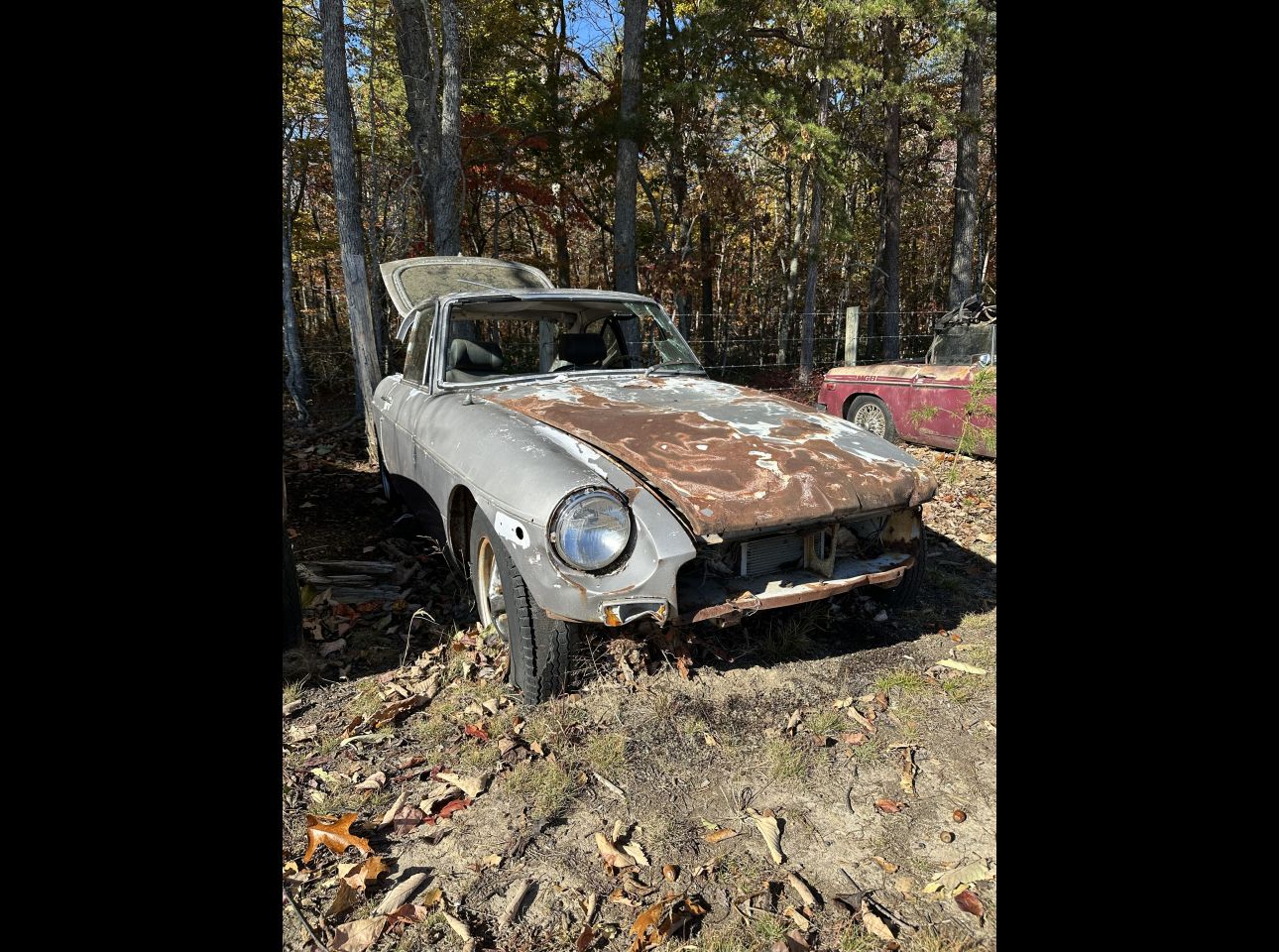 1978 MGB in fair condition. Includes title, motor, and transmission, though not currently running. VIN: 463947. Located in Troutville.