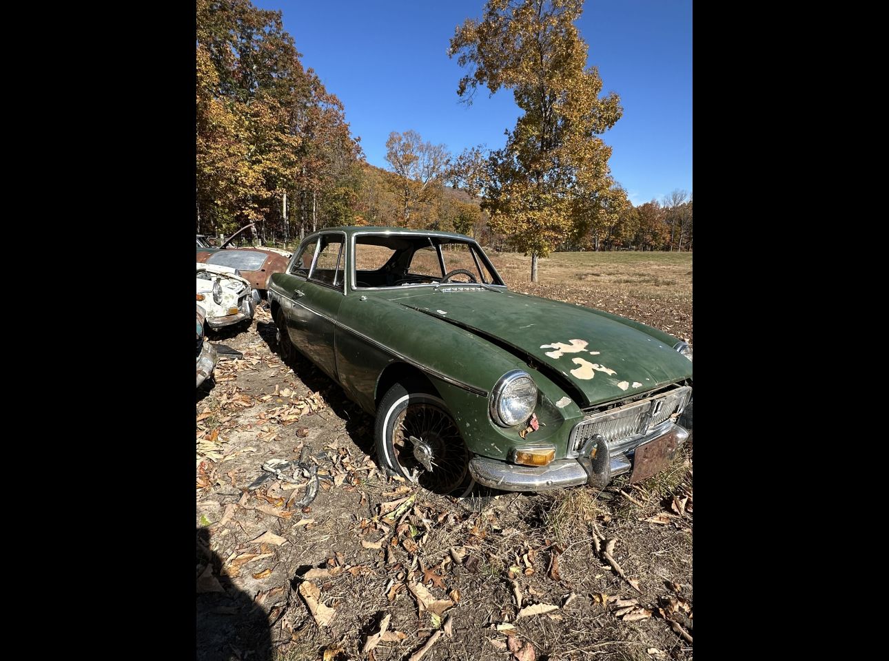 1969 Green MGB GC in fair condition. Complete with title, motor, and transmission. Not running. VIN: 5971. Located in Troutville.