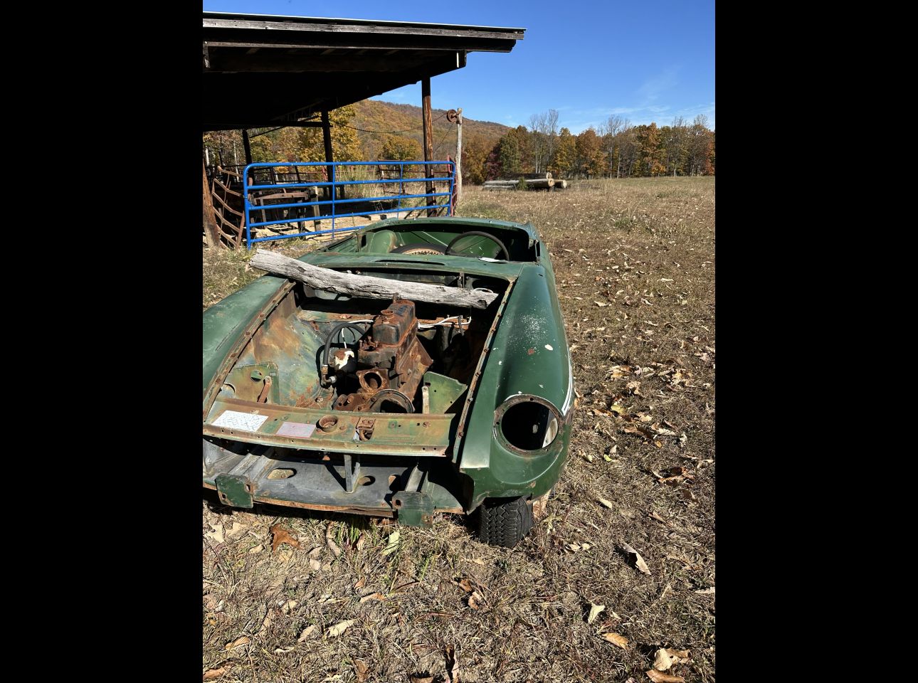 Blue MGB in fair condition. Includes motor and transmission but not running. No title. Great project opportunity. Located in Troutville.