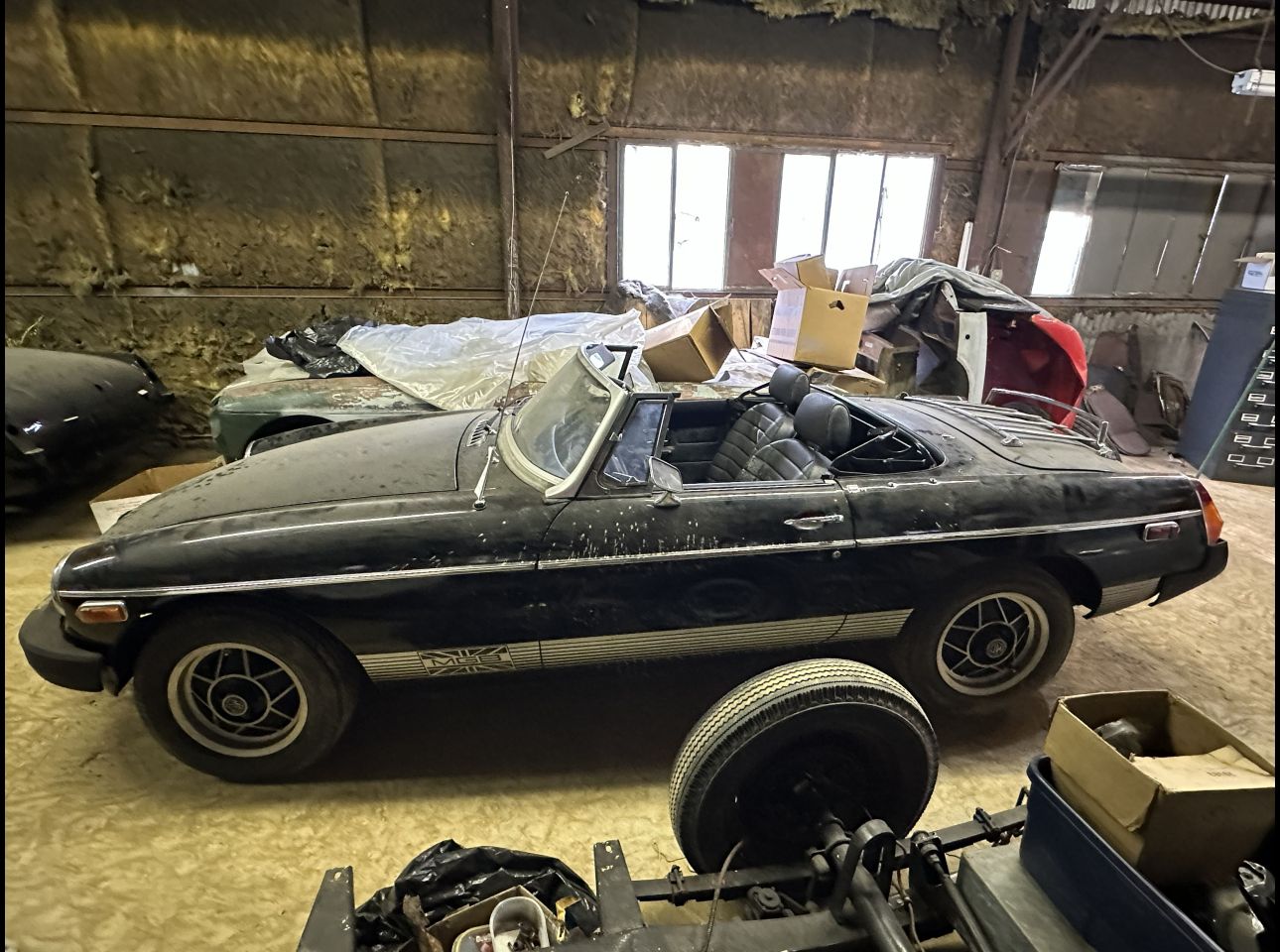 MGB in fair condition. Equipped with motor and transmission, not running. VIN: 214686. No title. Located in Troutville.