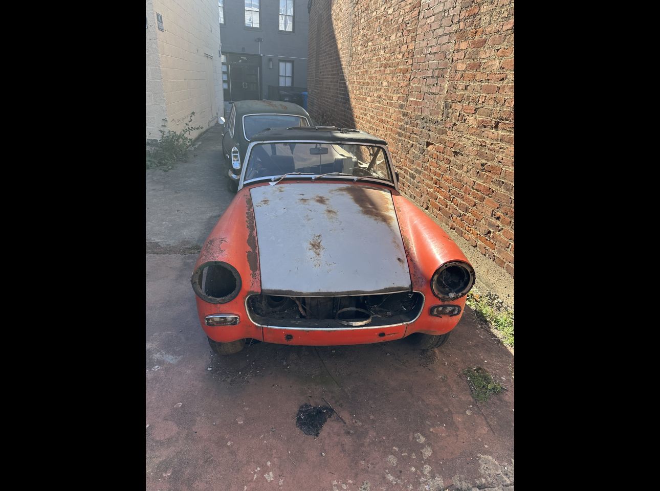 Blaze Orange 1970 MGB GT in fair condition. No engine or transmission This chrome-bumpered coupe maintains its vintage appeal and offers great restoration potential. Located at the Salem Ave location.
