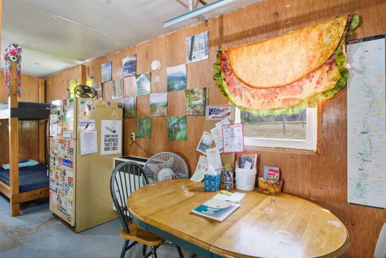 The Rest (Mobile Home – 952 SF) – 2 rooms for rent. 1 with private bath = $80/night ($10 for additional person). 1 room must use bathhouse = $65/night ($10 for additional person). In the off season the entire mobile home rents for $175/night. Year built = 1970 (pg 31 of appraisal). Town Water and Sewer (Connected to sewer in 2021). Also serves as common area for all hikers until 8 PM. Large kitchen for individual hiker and communal meals. Large living room comes with full DVD library, books, musical instruments, RoKu ready TV, board games, etc.