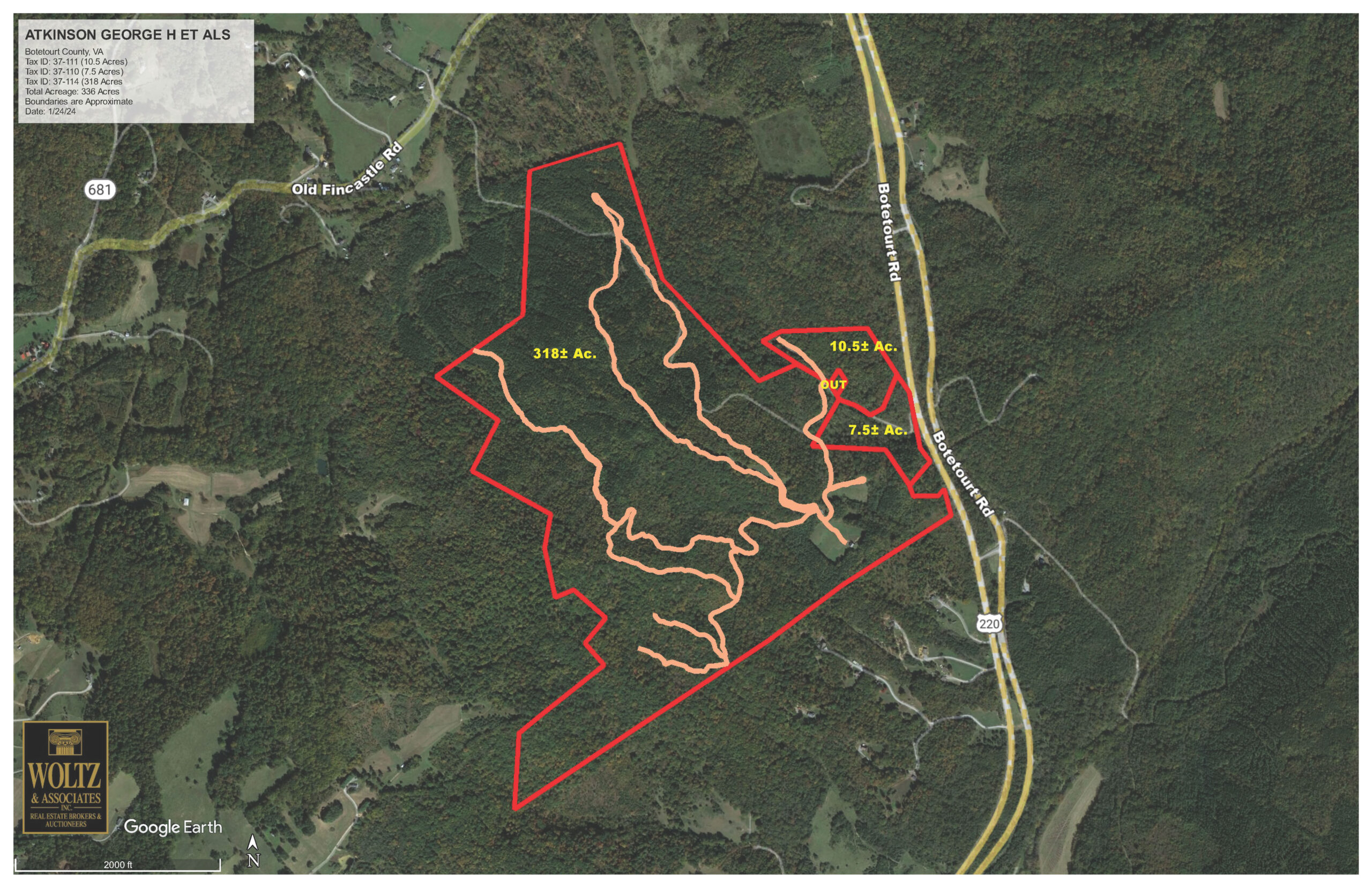 From Fincastle: Travel North on Botetourt Rd/Rt-220 for 7.7 miles. Make U-Turn & go South 0.3 miles. Then, turn Right onto property.