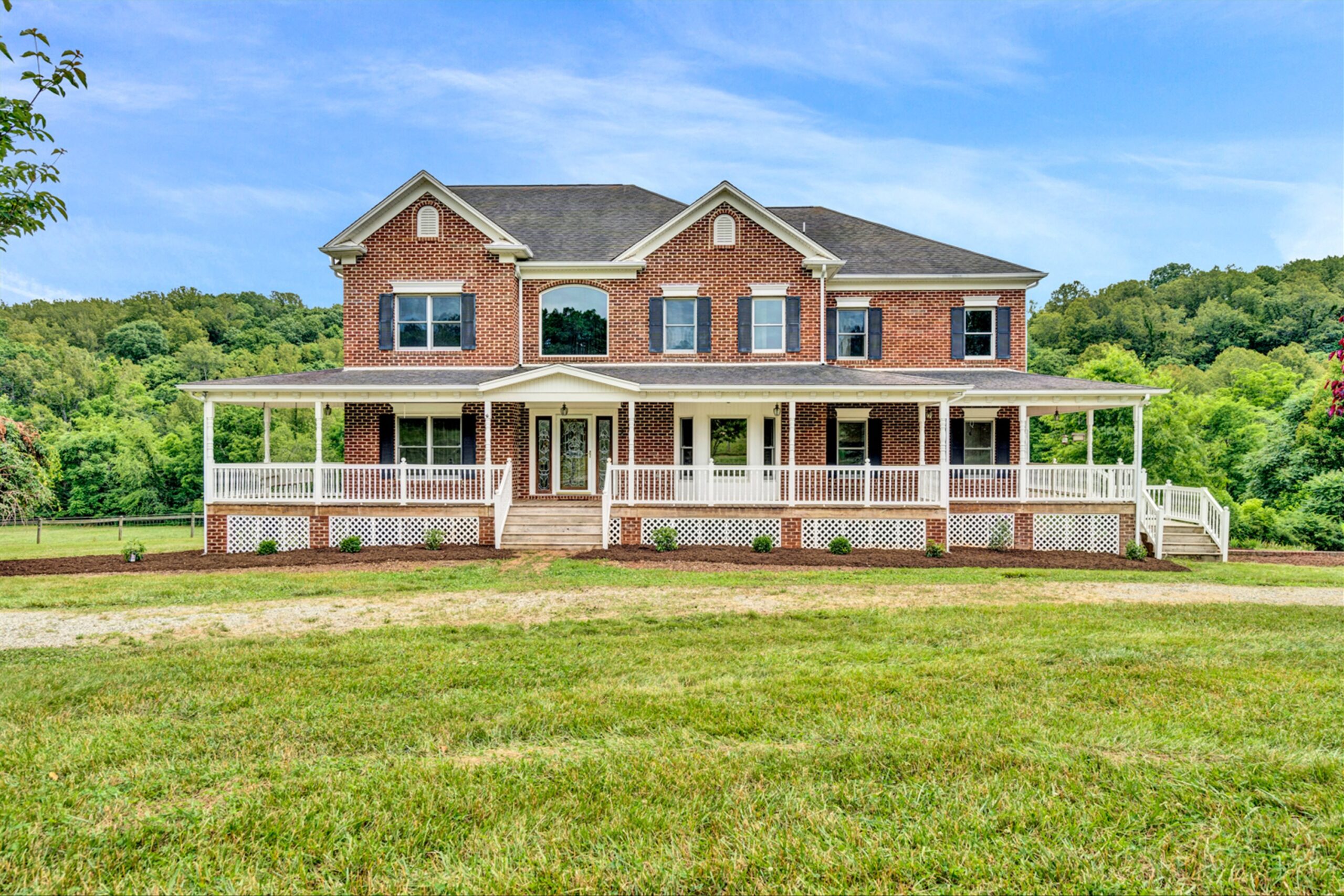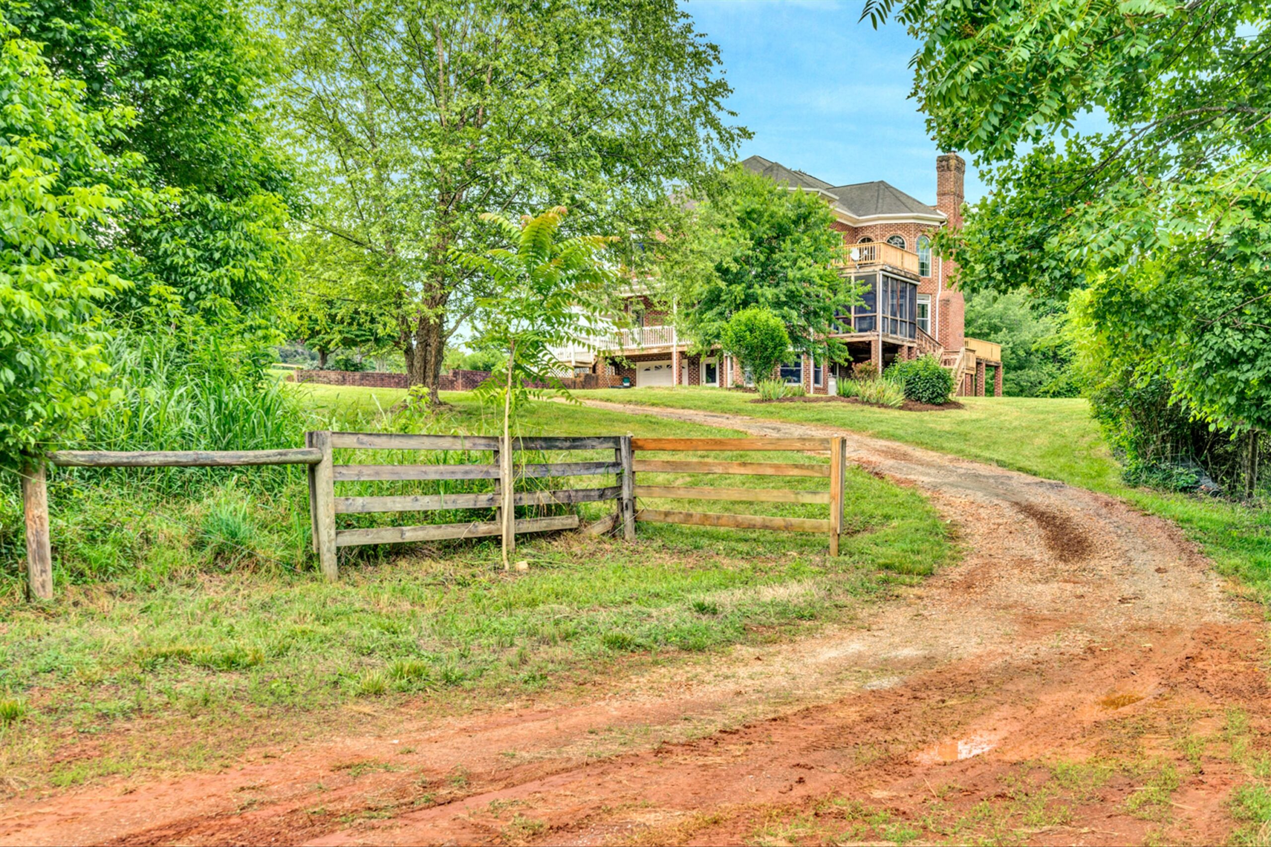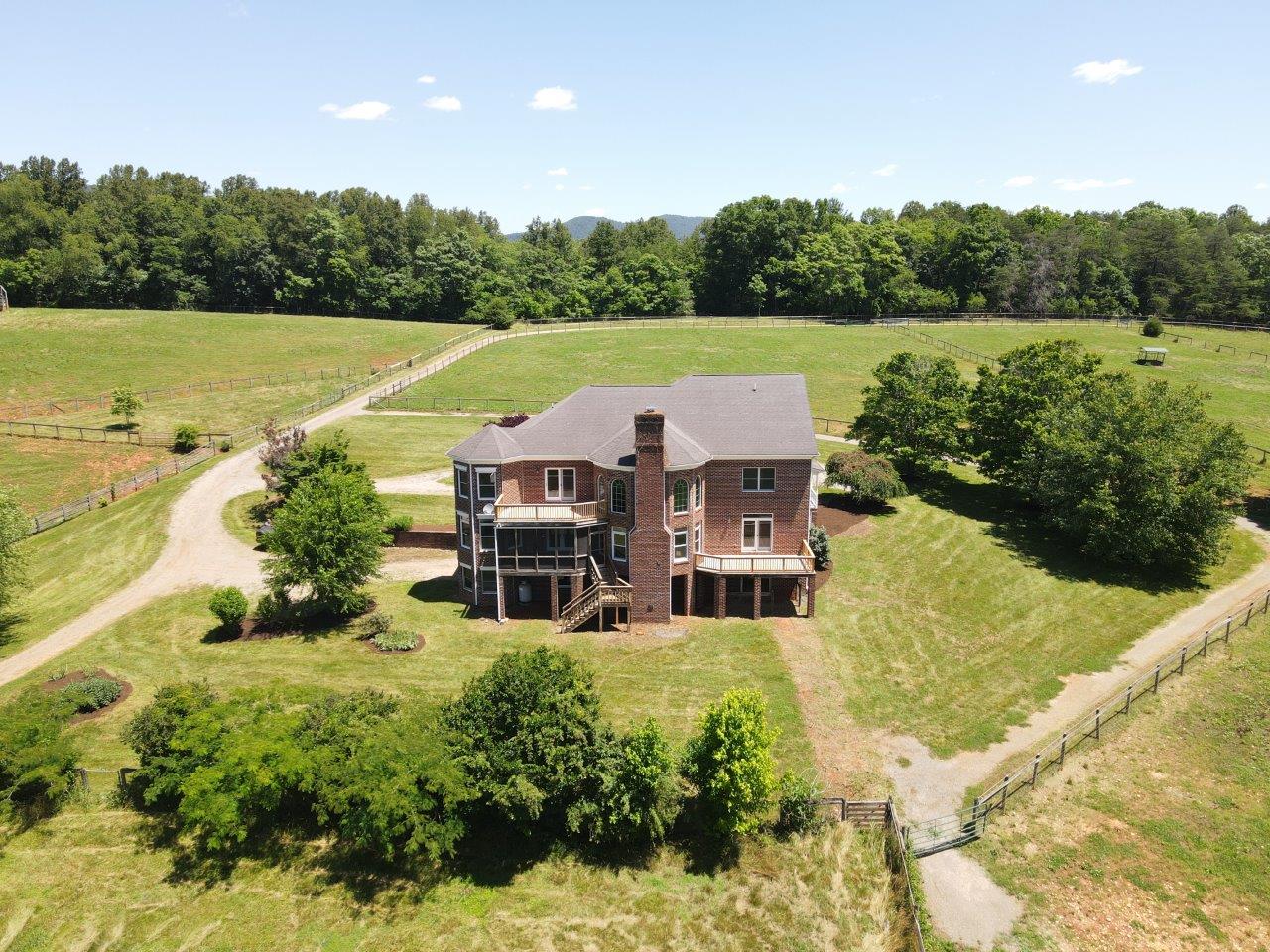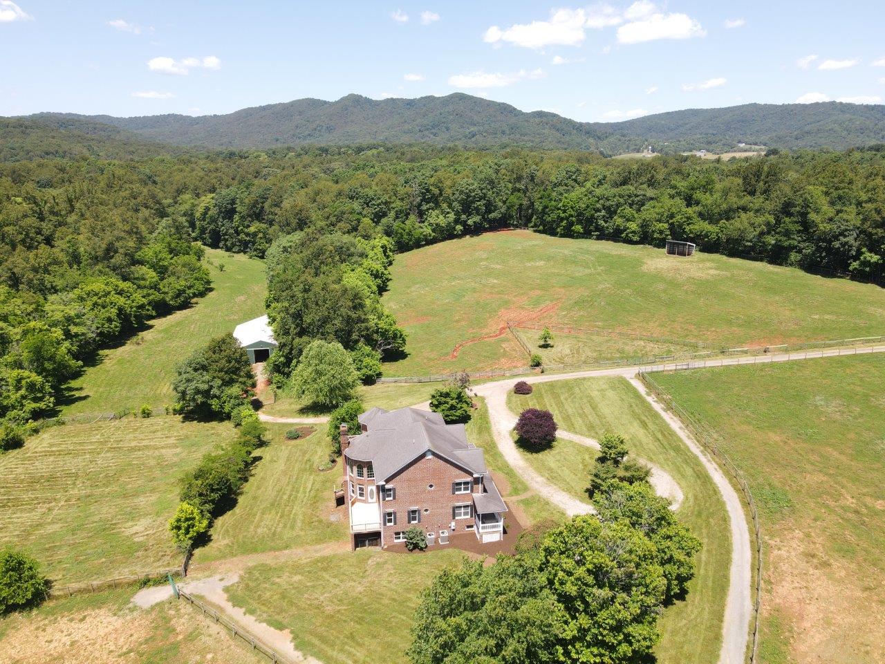 Magnificent 170 AC Horse Farm with 2 houses, 4 stall horse barn, multiple paddocks & long frontage along Gills Creek, only 20 minutes to Carilion/Downtown Roanoke! This incredible country estate consists of a beautiful 4800 SF Brick 2-Story Home situated on 170 acres, comprised of appx 17 acres of open pasture & 150 acres of mature mixed hardwoods with long frontage along Gills Creek! There are several paddocks, run-in sheds & multiple water spigots throughout. Also includes 36’x82′ metal barn with 4 stalls & tack room. (2225 Red Valley) This beautiful 2-story, built in 1996, has a wraparound covered front porch. Unique features include oak hardwoods throughout the entry level & spacious open floor plan that includes a large open foyer & great room with vaulted ceilings & a wood burning fireplace. A large custom kitchen with maple cabinets & granite tops, eat-in-kitchen & screened in porch accessed off the kitchen. Entry level also featured a formal living room, large dining room & ensuite bedroom with walk-in closet & private balcony (new) overlooking Gills Creek. Upper level includes large Primary Ensuite bedroom with gas fireplace, spacious walk-in closet & its own private balcony (new). The large bedroom has tile flooring, a double sink vanity, tile walk-in shower & large soaker tub. Third ensuite bedroom is spacious as well. The bathroom includes tile top vanity, & fiberglass tub/shower. The additional room/office was appointed as a bedroom but could be used as an office or workout room. Lower level has plenty of room for additional finished space with the of exception of the flooring. Large open area includes a single car garage deep enough for 2 vehicles, laundry area & 400amp electric service.