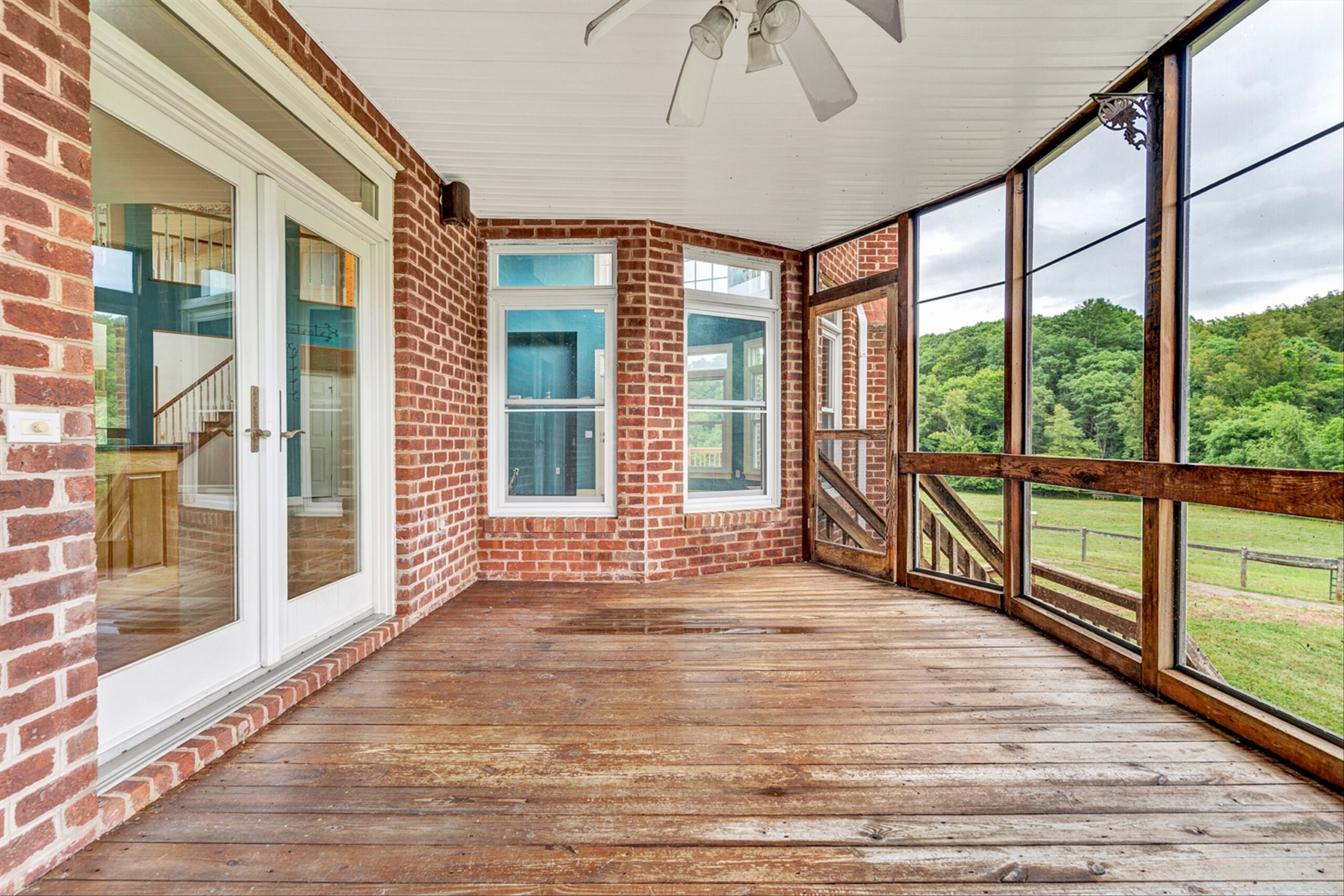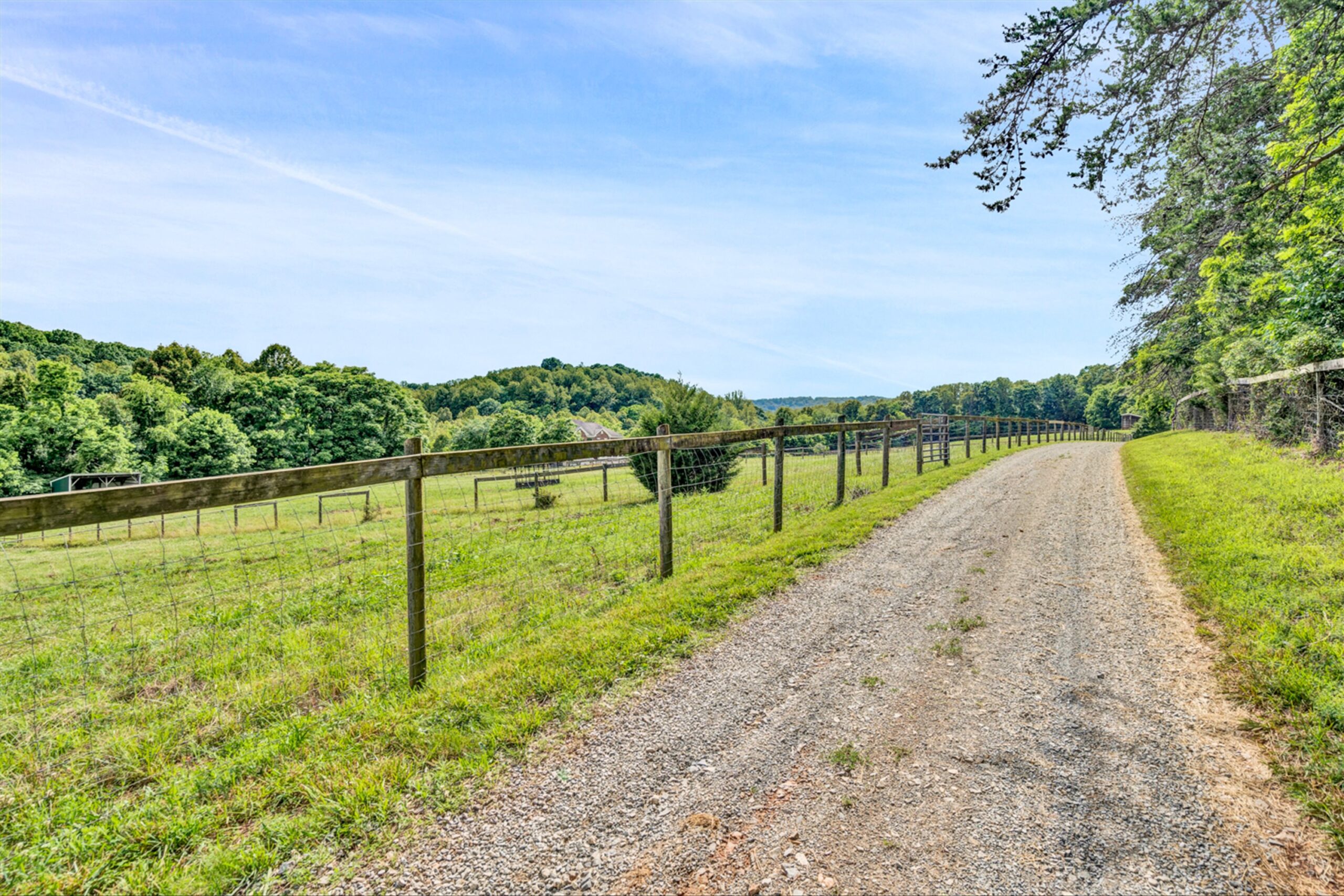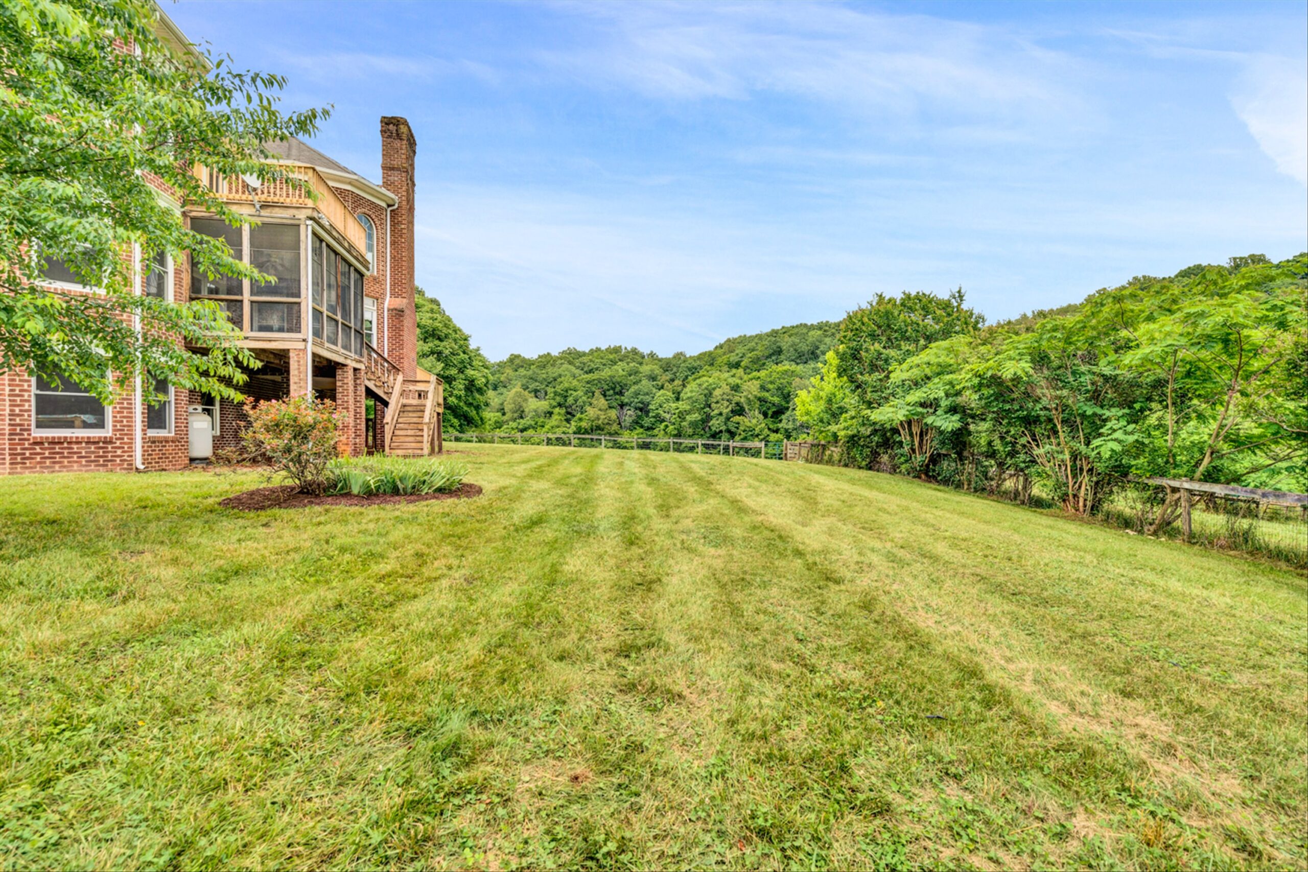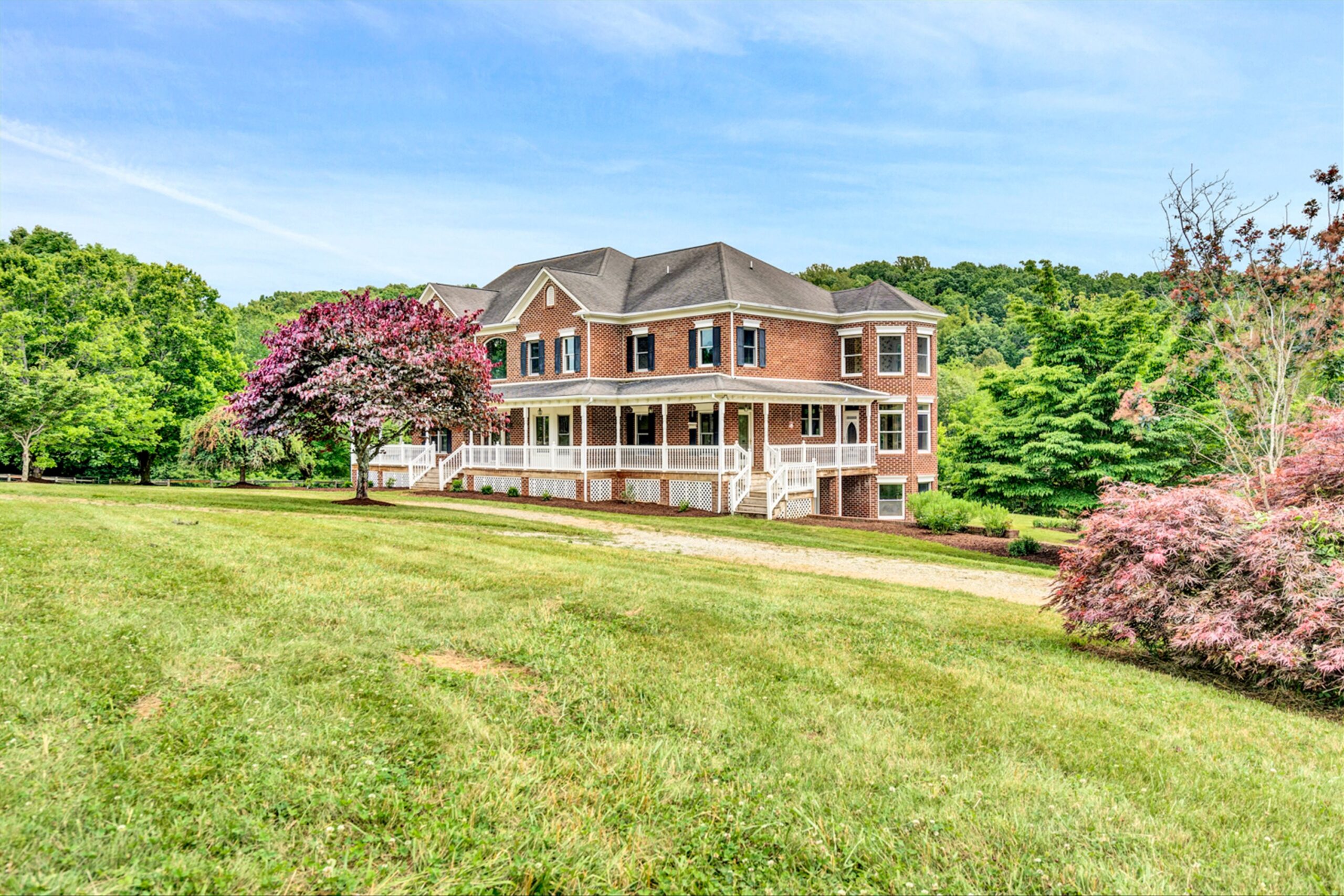 Magnificent 170 AC Horse Farm with 2 houses, 4 stall horse barn, multiple paddocks & long frontage along Gills Creek, only 20 minutes to Carilion/Downtown Roanoke! This incredible country estate consists of a beautiful 4800 SF Brick 2-Story Home situated on 170 acres, comprised of appx 17 acres of open pasture & 150 acres of mature mixed hardwoods with long frontage along Gills Creek! There are several paddocks, run-in sheds & multiple water spigots throughout. Also includes 36’x82′ metal barn with 4 stalls & tack room. (2225 Red Valley) This beautiful 2-story, built in 1996, has a wraparound covered front porch. Unique features include oak hardwoods throughout the entry level & spacious open floor plan that includes a large open foyer & great room with vaulted ceilings & a wood burning fireplace. A large custom kitchen with maple cabinets & granite tops, eat-in-kitchen & screened in porch accessed off the kitchen. Entry level also featured a formal living room, large dining room & ensuite bedroom with walk-in closet & private balcony (new) overlooking Gills Creek. Upper level includes large Primary Ensuite bedroom with gas fireplace, spacious walk-in closet & its own private balcony (new). The large bedroom has tile flooring, a double sink vanity, tile walk-in shower & large soaker tub. Third ensuite bedroom is spacious as well. The bathroom includes tile top vanity, & fiberglass tub/shower. The additional room/office was appointed as a bedroom but could be used as an office or workout room. Lower level has plenty of room for additional finished space with the of exception of the flooring. Large open area includes a single car garage deep enough for 2 vehicles, laundry area & 400amp electric service.