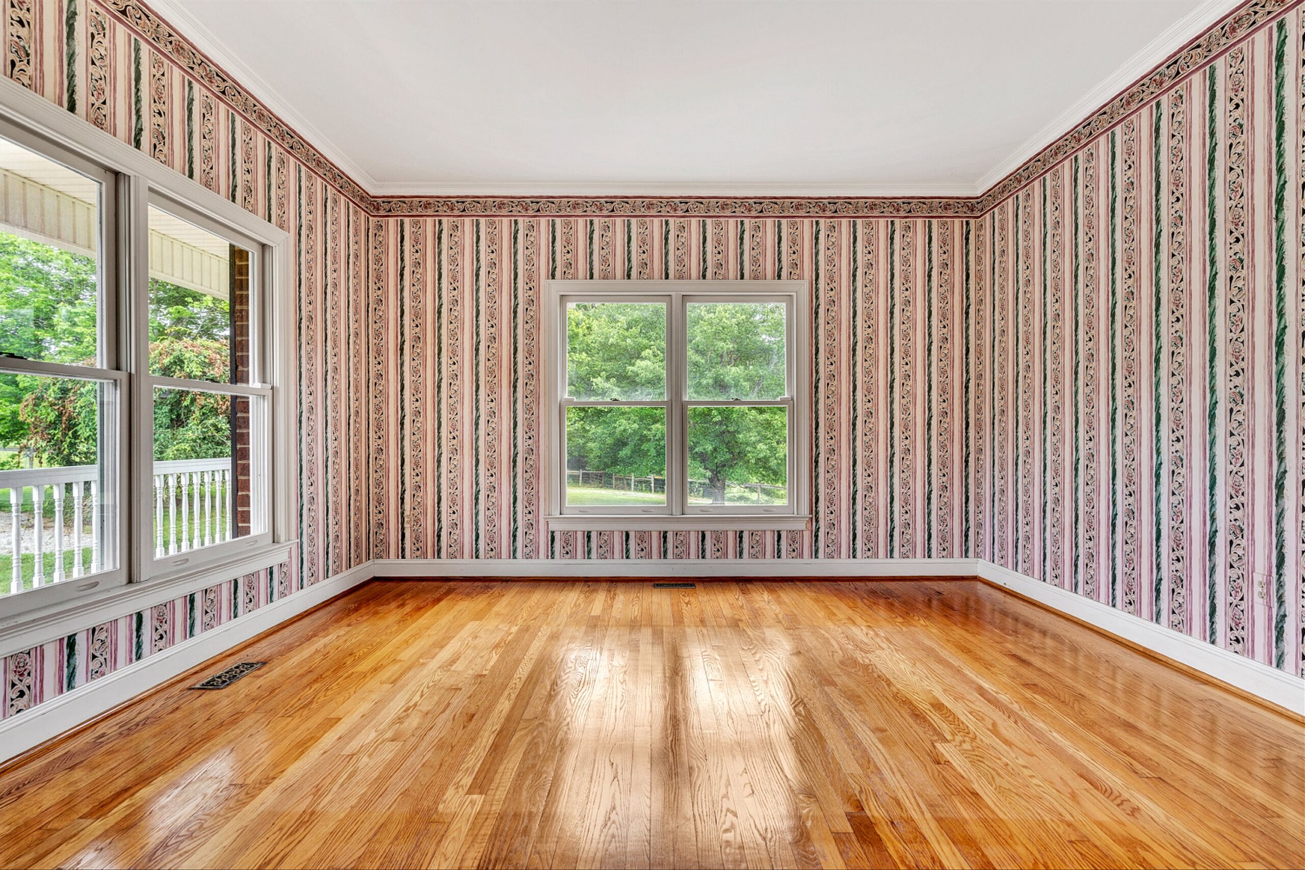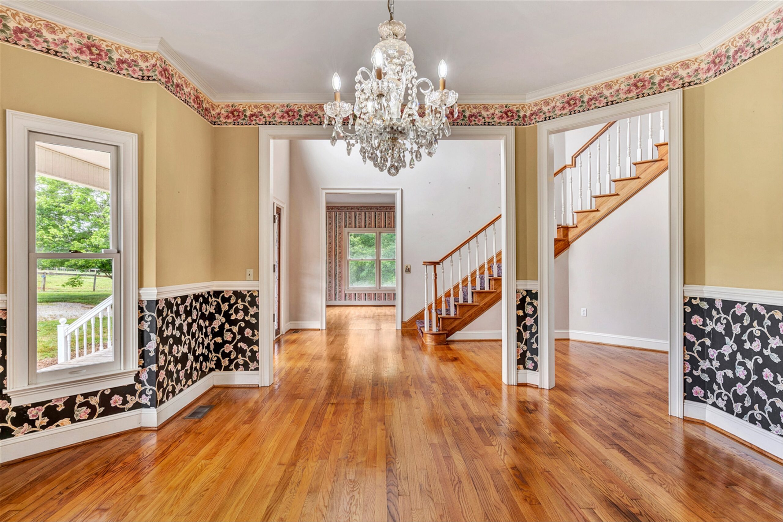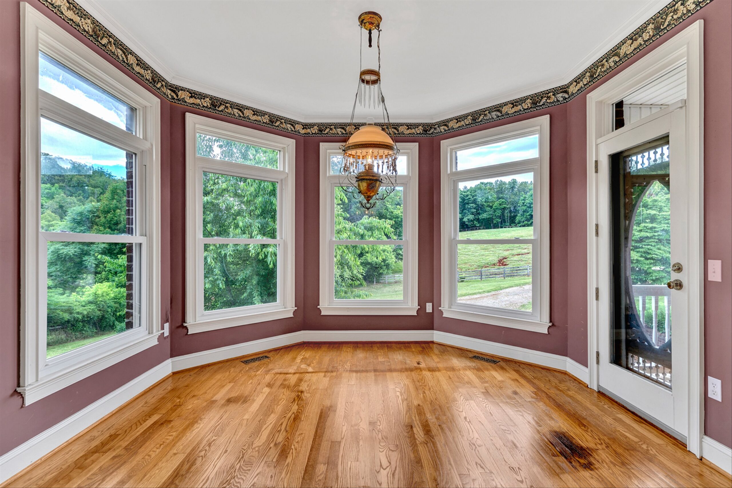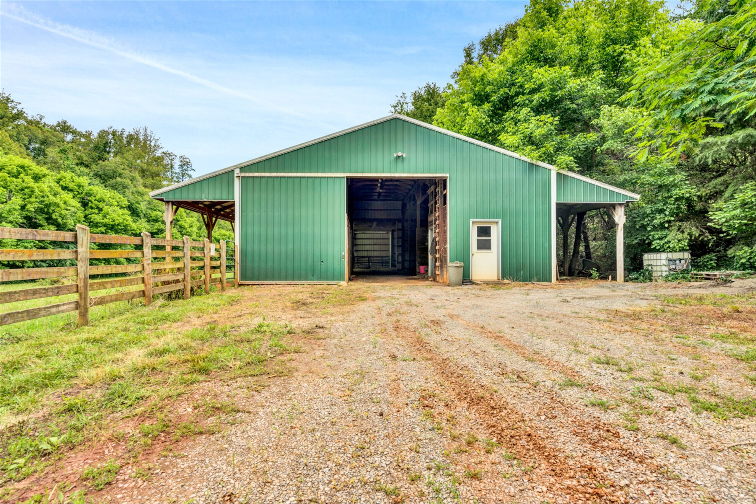 Magnificent 170 AC Horse Farm with 2 houses, 4 stall horse barn, multiple paddocks & long frontage along Gills Creek, only 20 minutes to Carilion/Downtown Roanoke! This incredible country estate consists of a beautiful 4800 SF Brick 2-Story Home situated on 170 acres, comprised of appx 17 acres of open pasture & 150 acres of mature mixed hardwoods with long frontage along Gills Creek! There are several paddocks, run-in sheds & multiple water spigots throughout. Also includes 36’x82′ metal barn with 4 stalls & tack room. (2225 Red Valley) This beautiful 2-story, built in 1996, has a wraparound covered front porch. Unique features include oak hardwoods throughout the entry level & spacious open floor plan that includes a large open foyer & great room with vaulted ceilings & a wood burning fireplace. A large custom kitchen with maple cabinets & granite tops, eat-in-kitchen & screened in porch accessed off the kitchen. Entry level also featured a formal living room, large dining room & ensuite bedroom with walk-in closet & private balcony (new) overlooking Gills Creek. Upper level includes large Primary Ensuite bedroom with gas fireplace, spacious walk-in closet & its own private balcony (new). The large bedroom has tile flooring, a double sink vanity, tile walk-in shower & large soaker tub. Third ensuite bedroom is spacious as well. The bathroom includes tile top vanity, & fiberglass tub/shower. The additional room/office was appointed as a bedroom but could be used as an office or workout room. Lower level has plenty of room for additional finished space with the of exception of the flooring. Large open area includes a single car garage deep enough for 2 vehicles, laundry area & 400amp electric service.