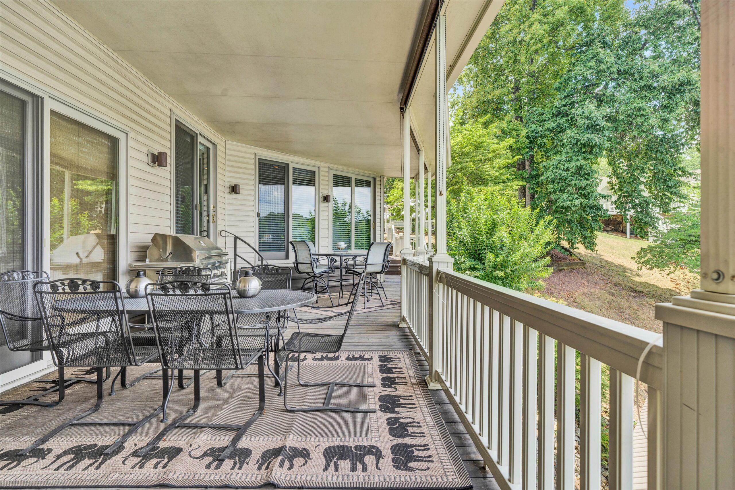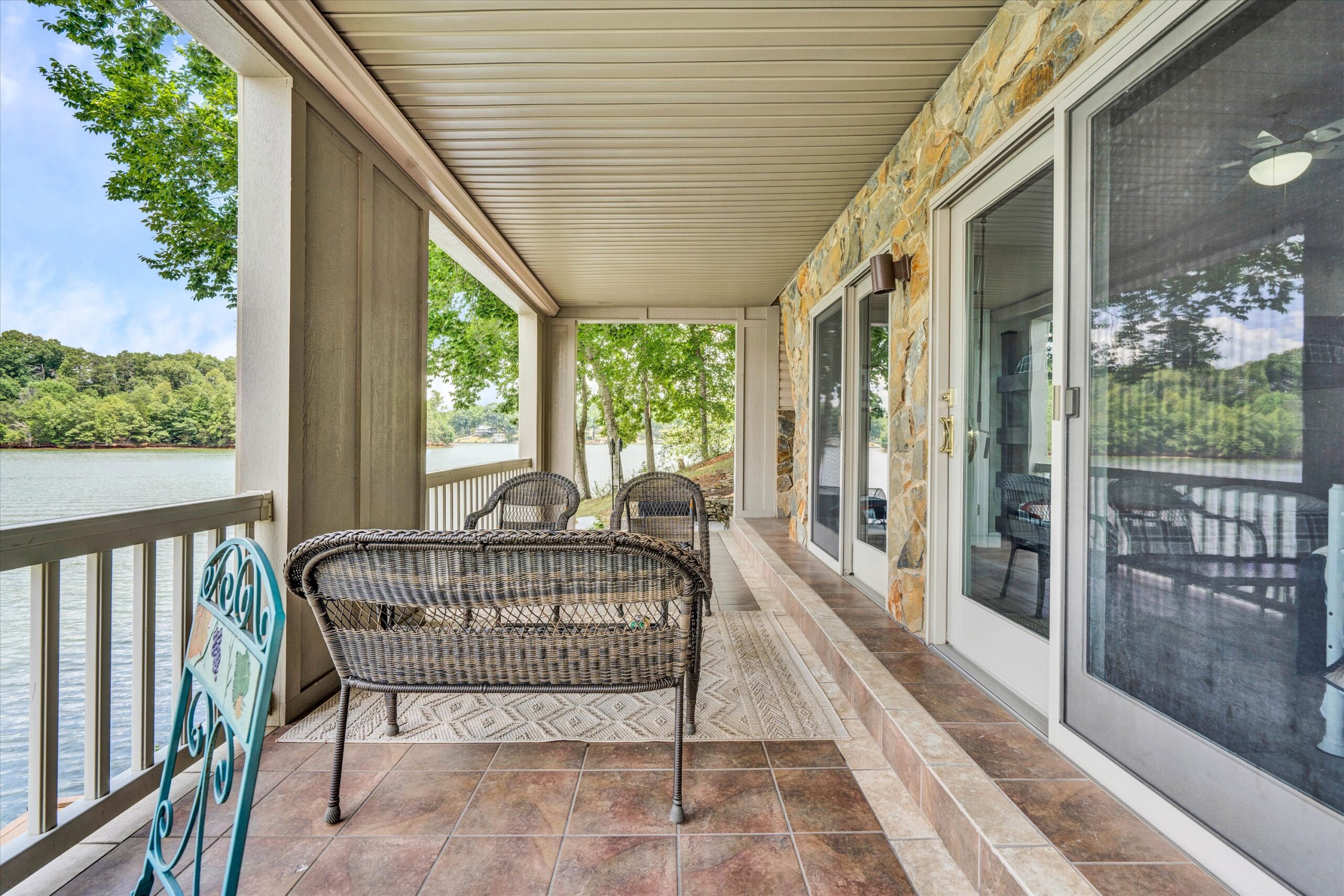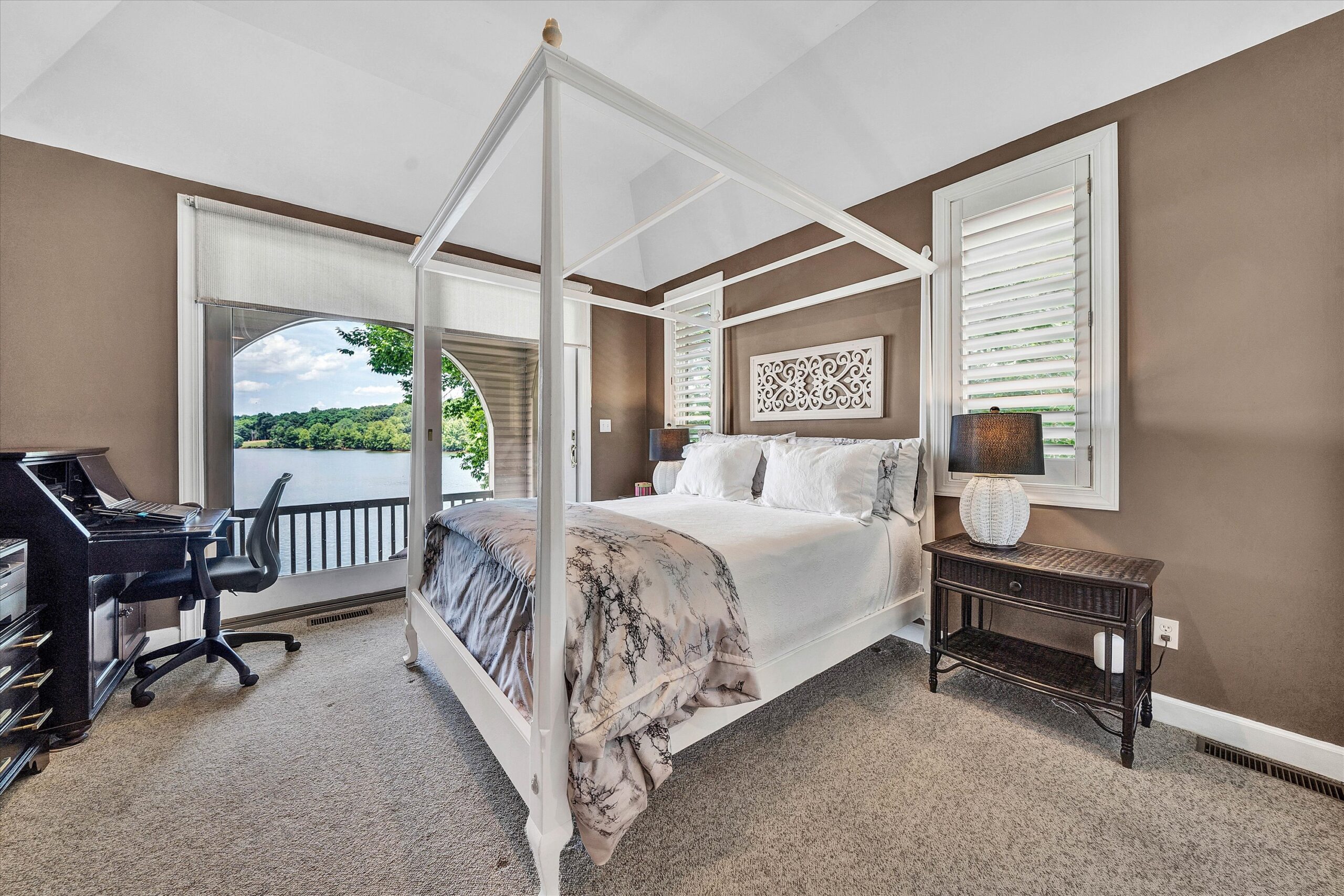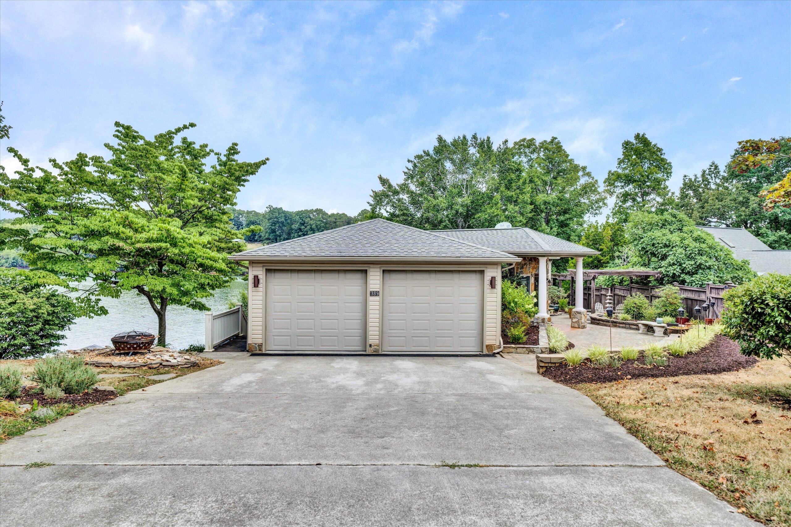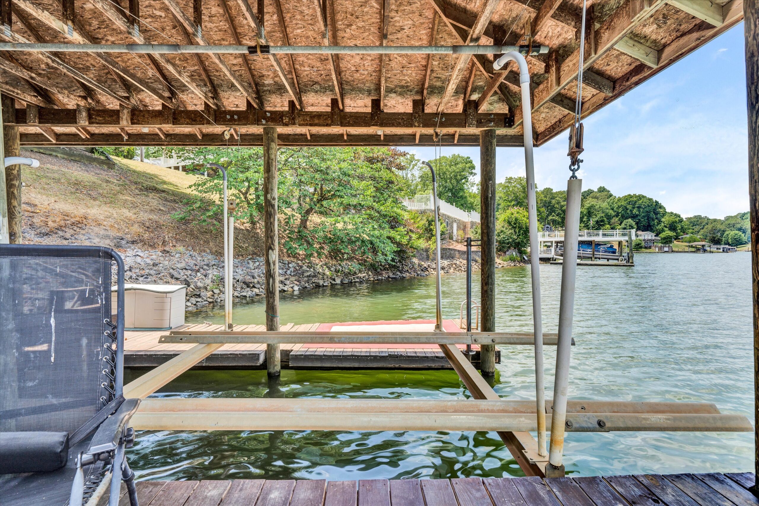 Conveniently located between Rocky Mount & Westlake, with wide views of the 4H Peninsula, this unique 3-level home was designed by Ralph Palmisano in 2000. Its classic Mediterranean lines are perfectly adapted to the hillside point lot & puts you close enough to the water to be startled by the sound of fish jumping or to see the shad & bluegills swarming as you lounge on one of its 4 decks. Shoreline features natural stone that abuts a man-made stone seawall constructed some 50 years ago by the original owners shortly after the lake was formed. Current owners purchased the property in 1993 & contracted Ben Perdue to build the boathouse, which was completed in 1996. Streetside, the house is located on a cul-de-sac in a small, close-knit community that has at least one neighborhood “Pig Pickin” every year & its 2 roads are county maintained, including plowing in winter. There is a concrete driveway leading to the attached 2-car garage & you don’t have to be a marathon athlete to walk to the end to get the mail.