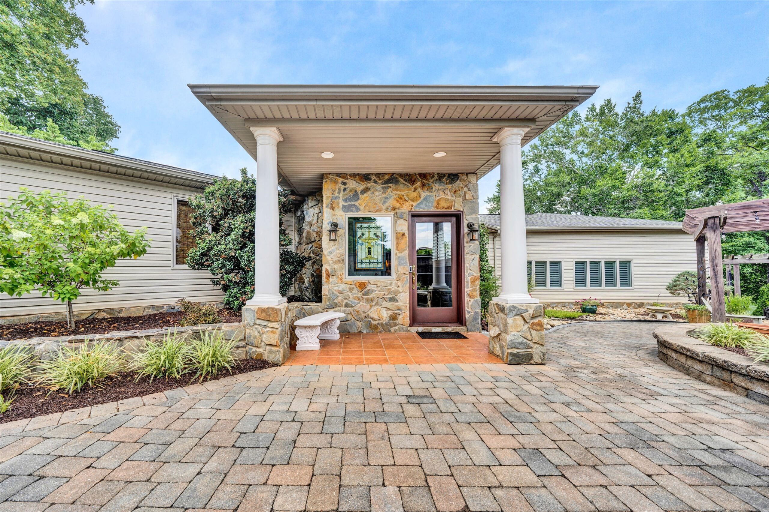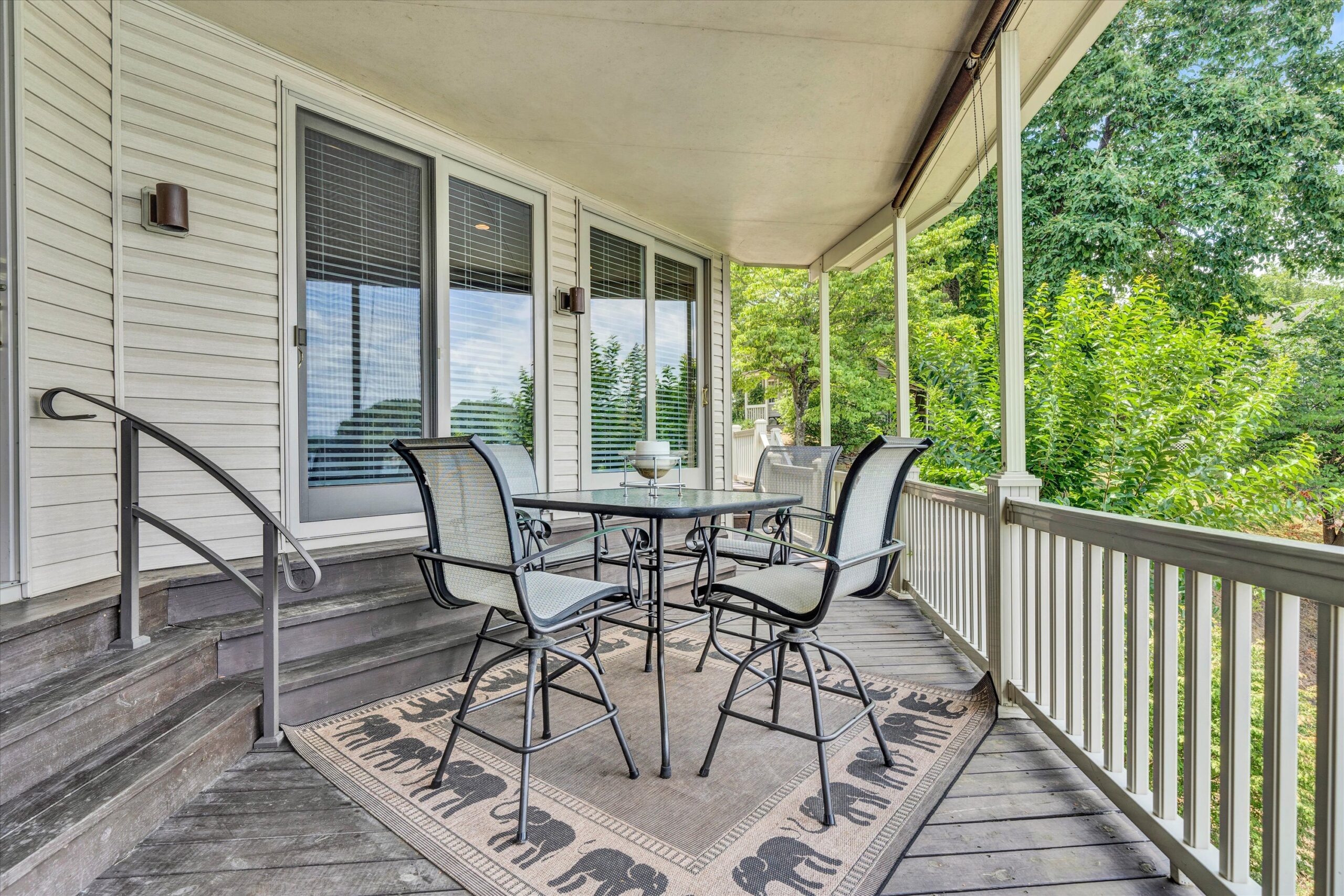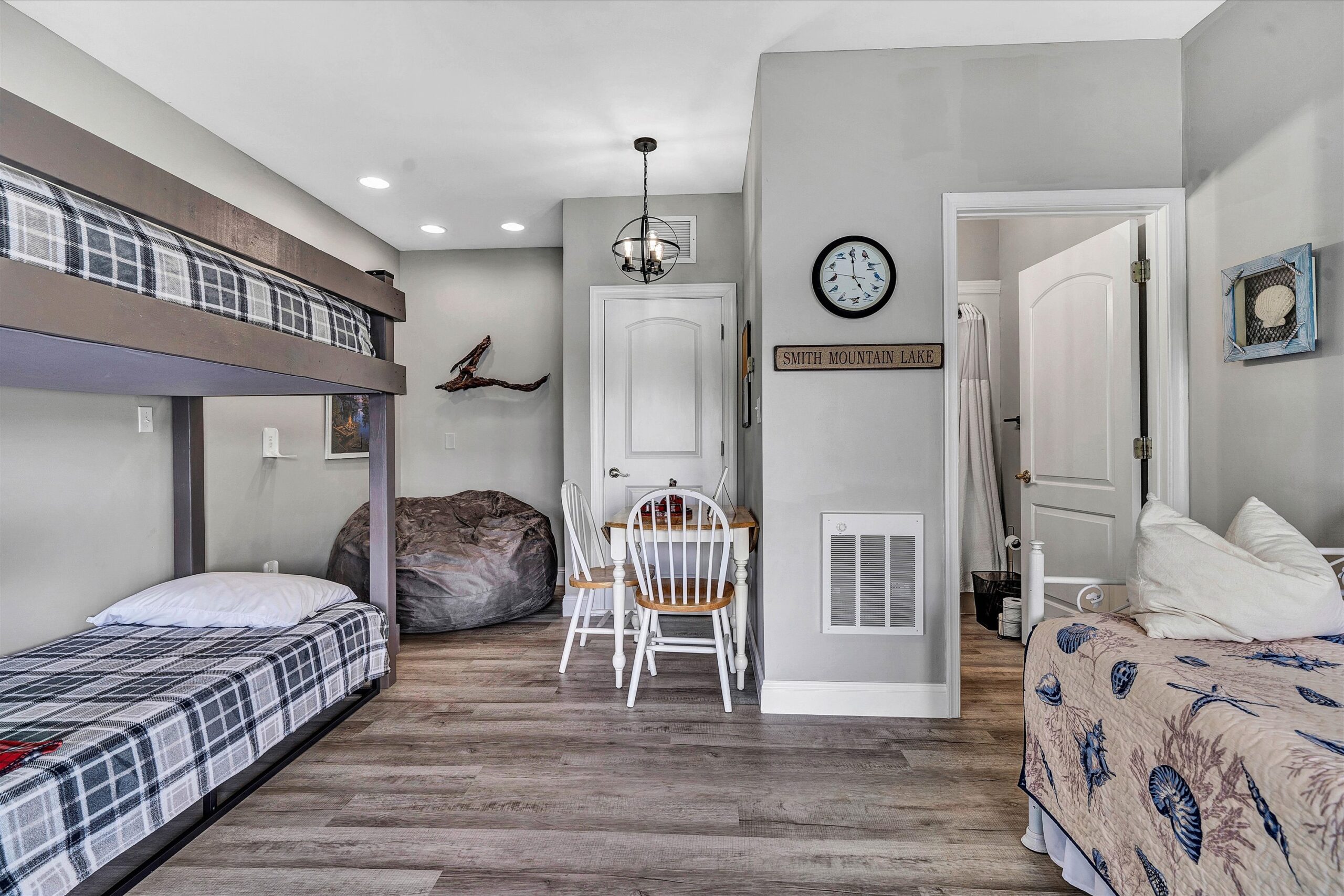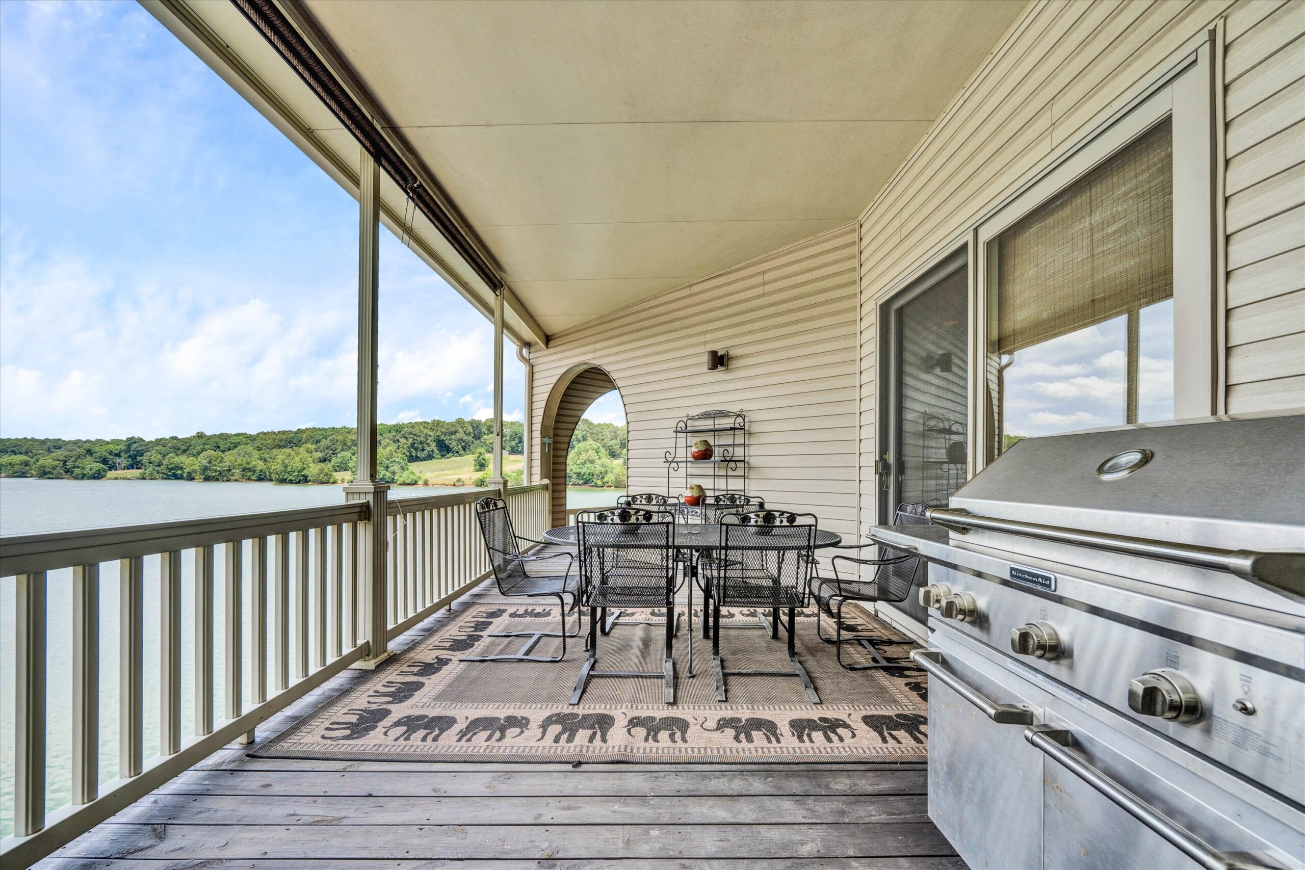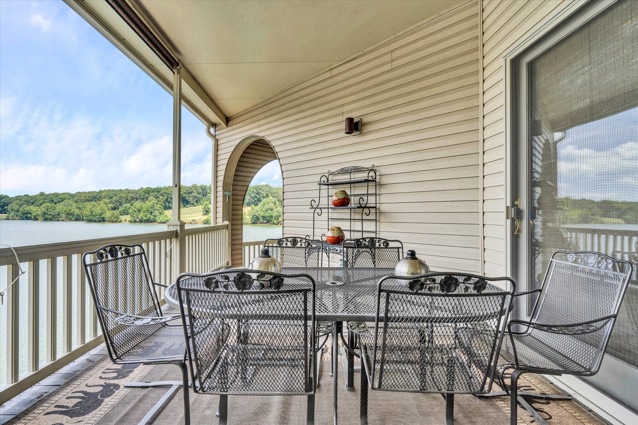 Conveniently located between Rocky Mount & Westlake, with wide views of the 4H Peninsula, this unique 3-level home was designed by Ralph Palmisano in 2000. Its classic Mediterranean lines are perfectly adapted to the hillside point lot & puts you close enough to the water to be startled by the sound of fish jumping or to see the shad & bluegills swarming as you lounge on one of its 4 decks. Shoreline features natural stone that abuts a man-made stone seawall constructed some 50 years ago by the original owners shortly after the lake was formed. Current owners purchased the property in 1993 & contracted Ben Perdue to build the boathouse, which was completed in 1996. Streetside, the house is located on a cul-de-sac in a small, close-knit community that has at least one neighborhood “Pig Pickin” every year & its 2 roads are county maintained, including plowing in winter. There is a concrete driveway leading to the attached 2-car garage & you don’t have to be a marathon athlete to walk to the end to get the mail.