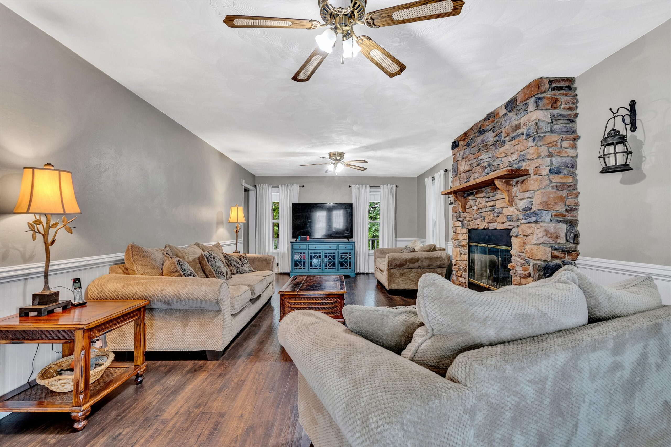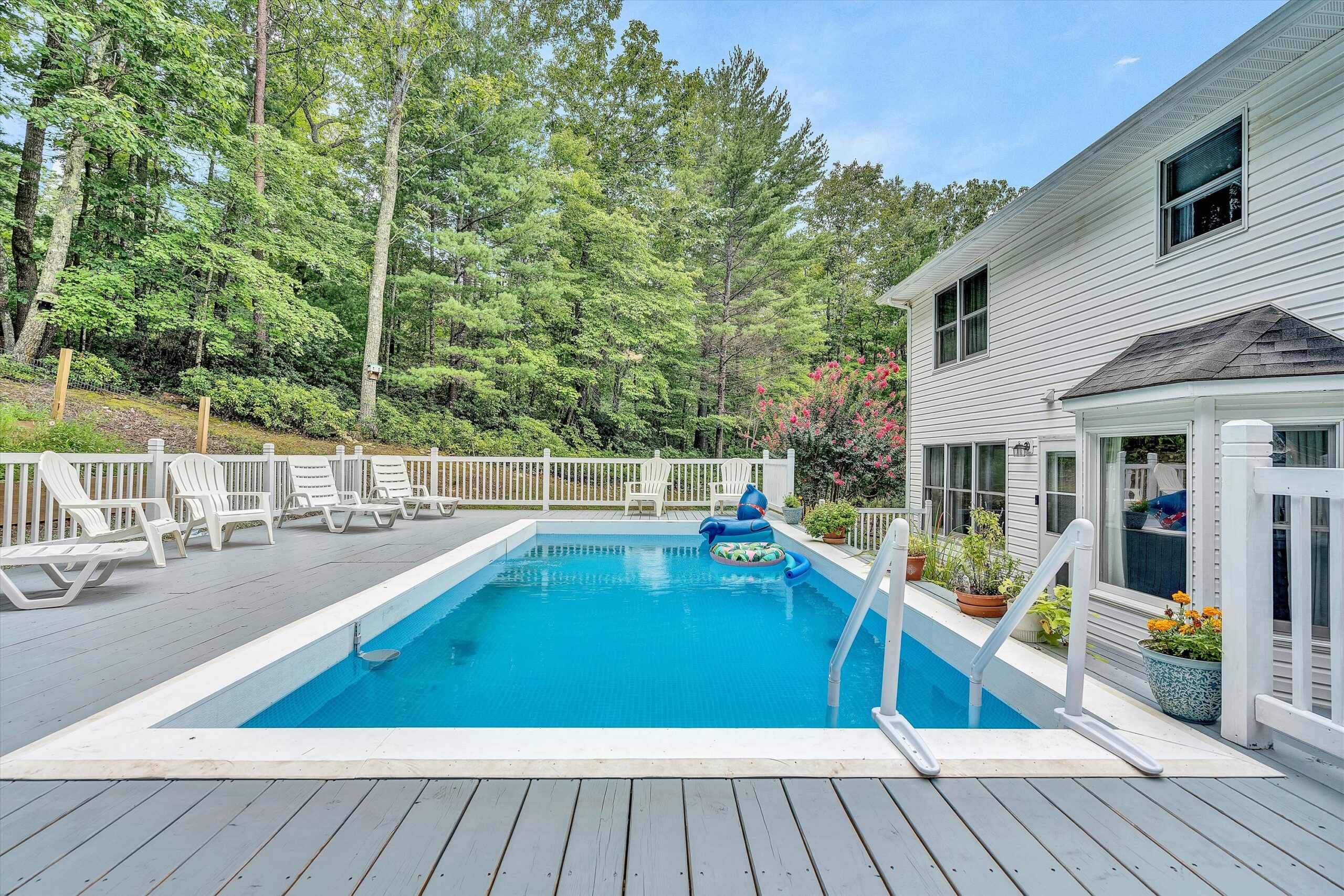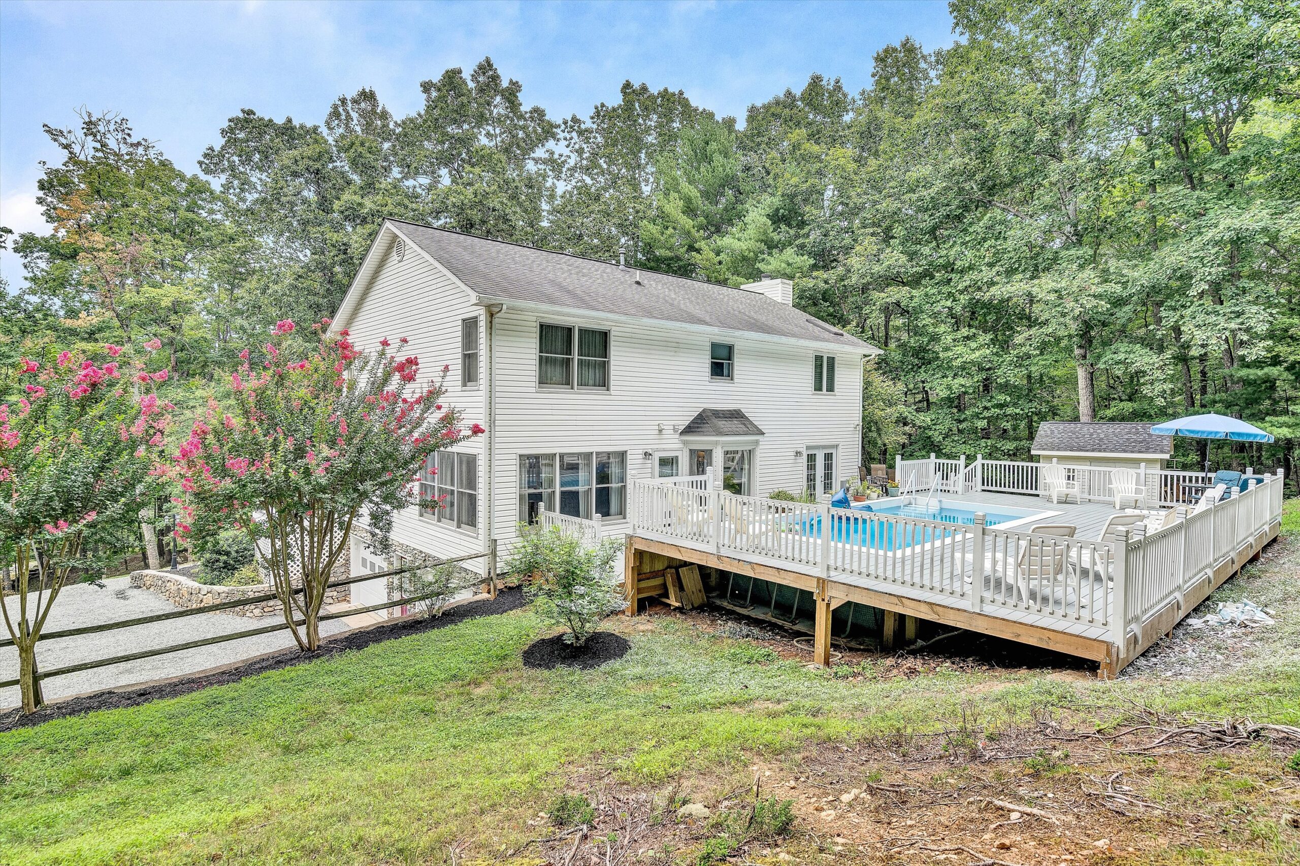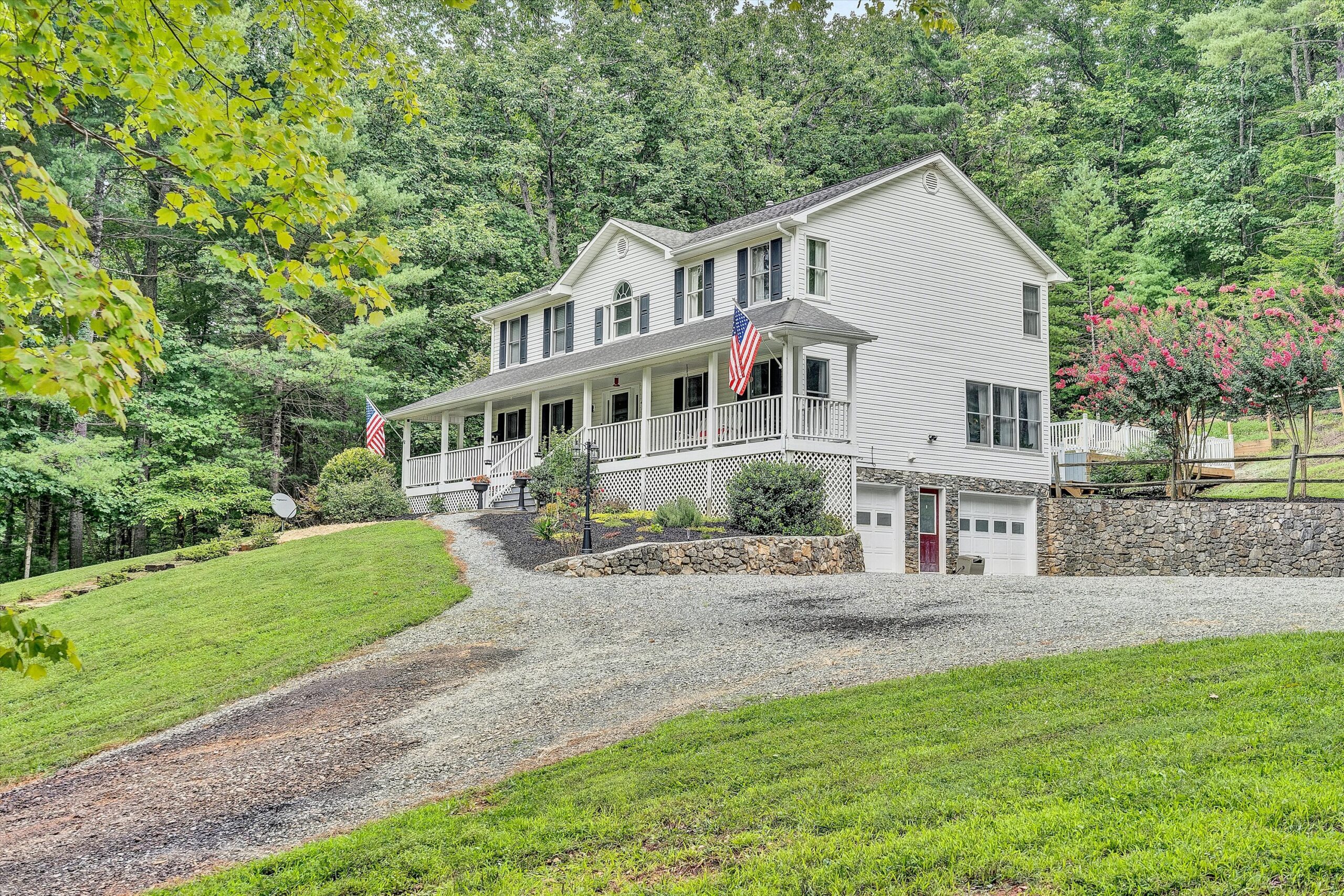 Beautiful updated 2 story home w/covered porch situated on 5 acres in a private setting! This spacious 2464 SF home offers 4 BR, 3.5 BA with an open floor plan & numerous updates! Enjoy the magnificent kitchen that boasts stainless steel appliances, custom cabinets & large center island complete w/elegant granite tops. Entry level offers great entertaining spaces that include living room w/stone gas fireplace & a spacious great room w/stone wood burning fireplace. Relax & enjoy the large deck & above ground pool off the rear of the home w/easy access from the kitchen & great room. The upper level includes large primary suite w/gas fireplace, vaulted ceilings, master bath w/shower & soaker tub & large WIC. There are also 3 addtl bedrooms & a full bath. The lower level includes a finished space that can be used as a office or workout room w/its own full bath but is appointed as an additional bedroom. Tons of additionall storage space & a 2-car garage underneath. Home has high speed fiber optic (Shentel). This property is only 15 min to Roanoke, -25 mins to SML!!