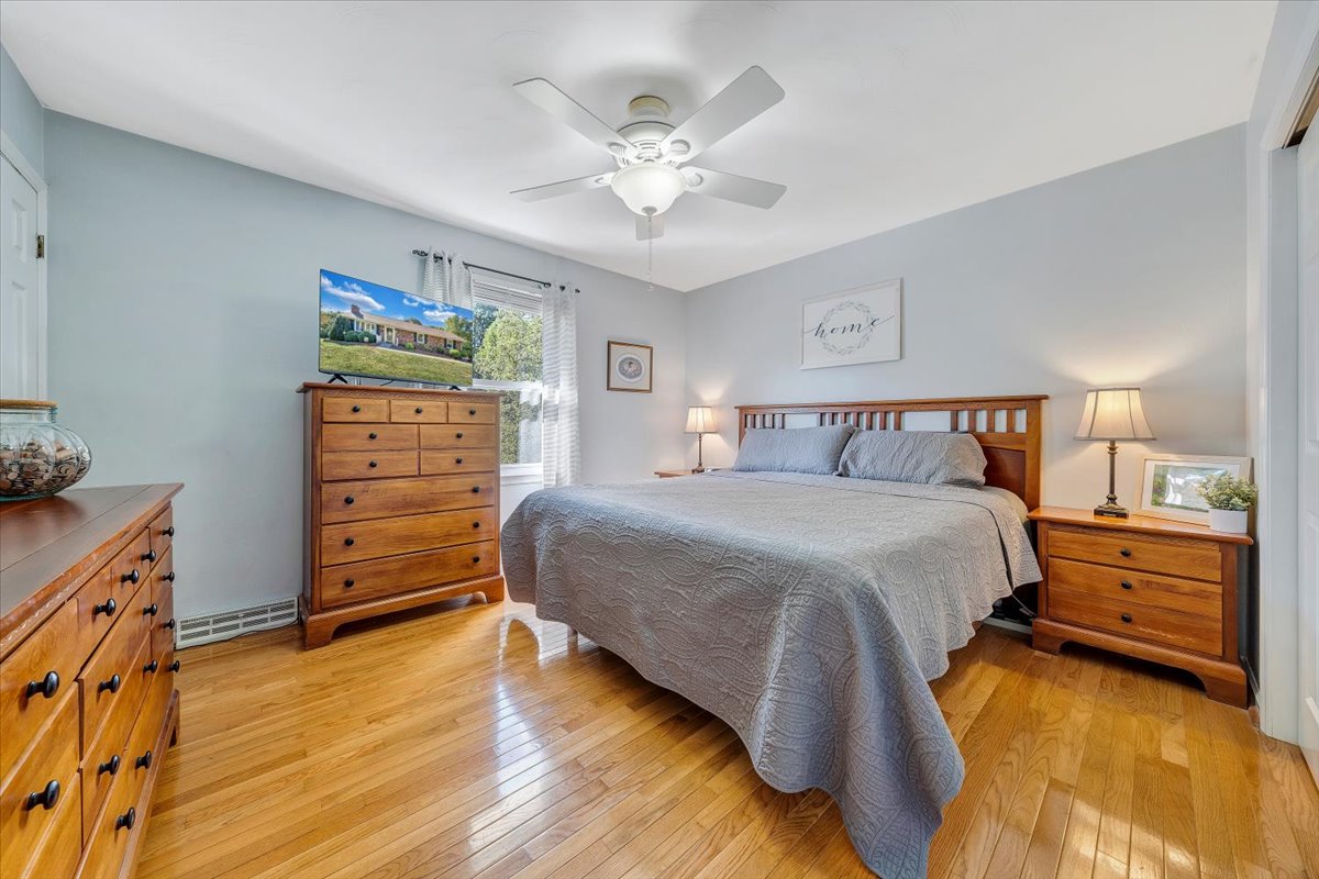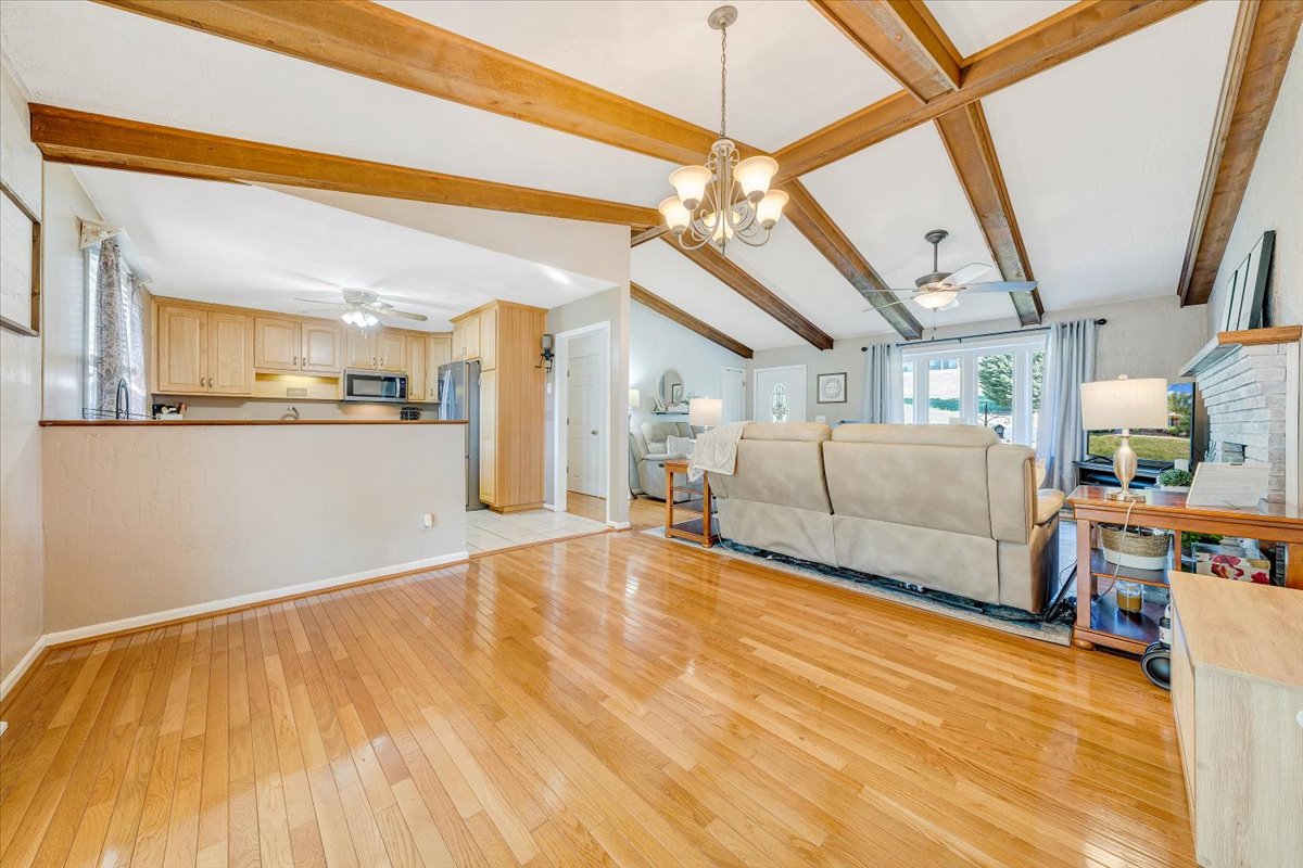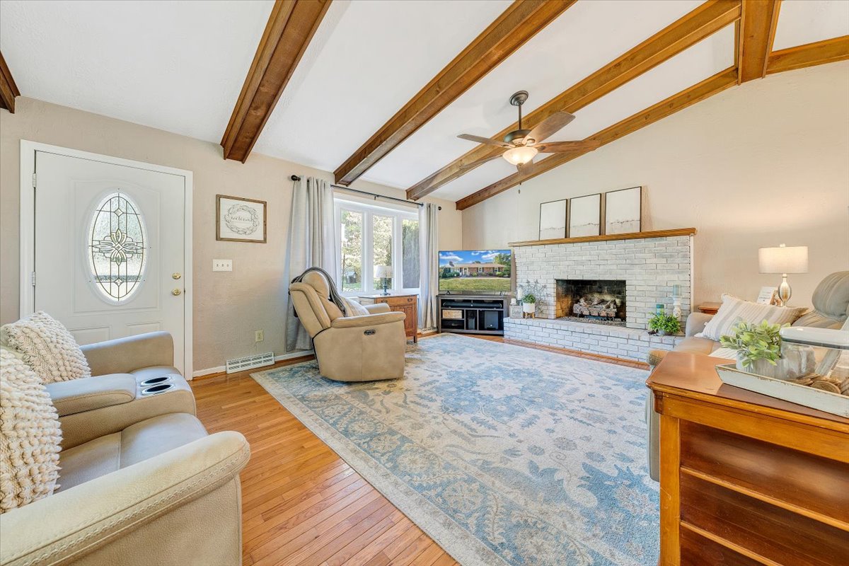 Well kept brick ranch in a great Blue Ridge subdivision. Custom hickory cabinets, matching Whirlpool stainless steel appliances & porcelain floor make this kitchen a must see. Vaulted ceiling & hardwood floors welcome you in as soon as you open front door. There is new carpet in all the secondary bedrooms & lower level. Primary bedroom has wood floors & 3 baths are tile. The newly constructed Colonial Elementary School is nearby! There is a nice sun room off the back of the house. Great Location & Great Home!
