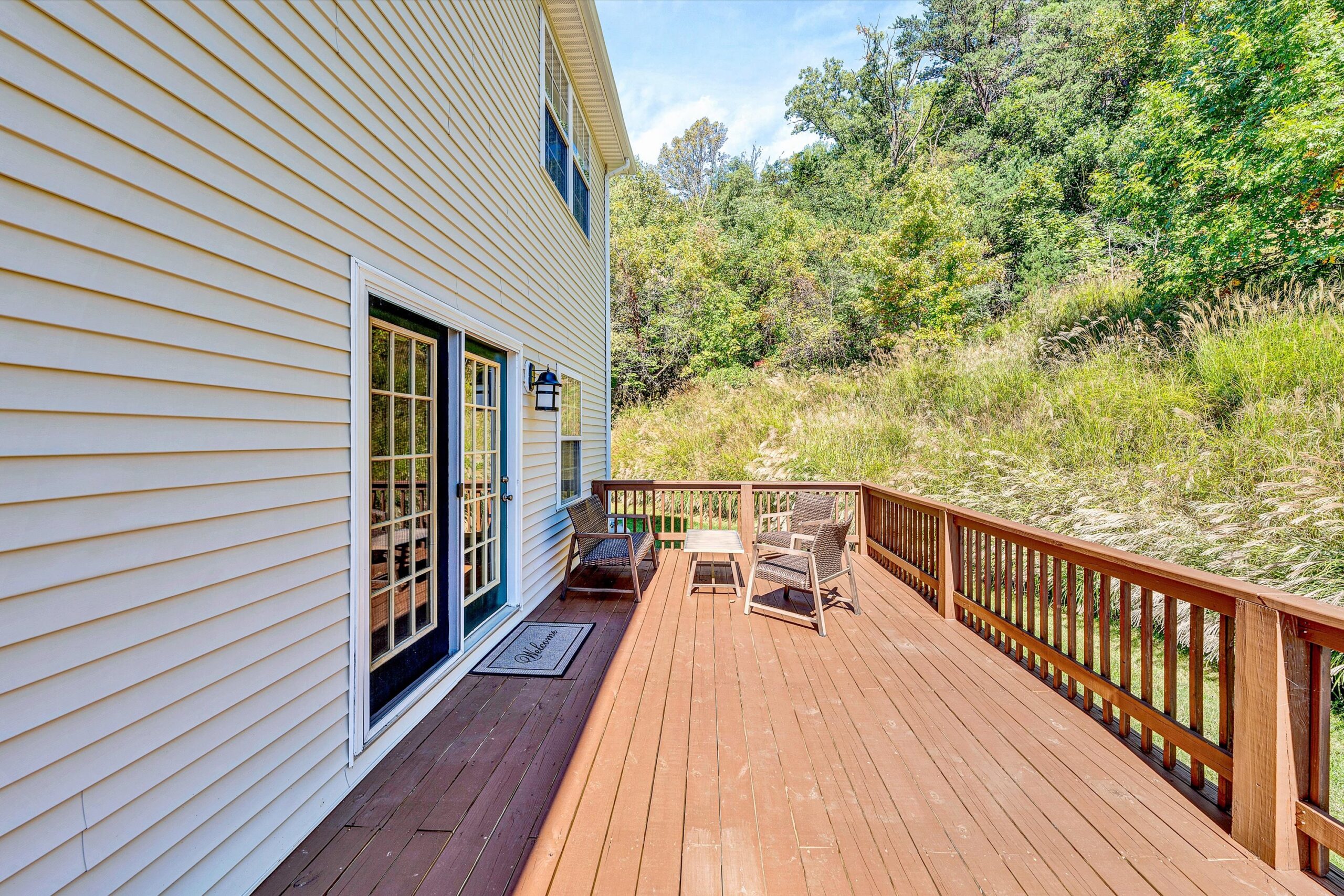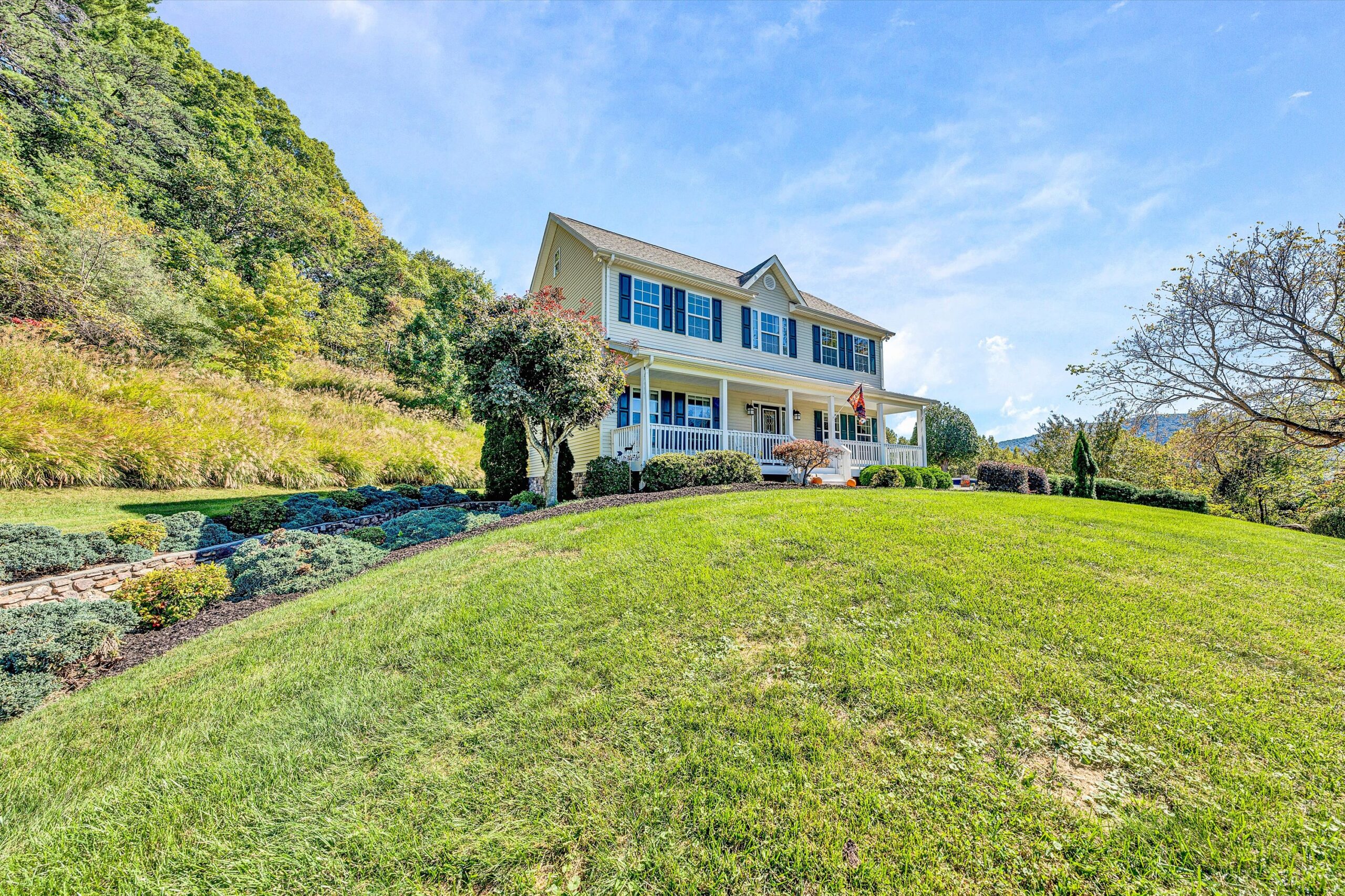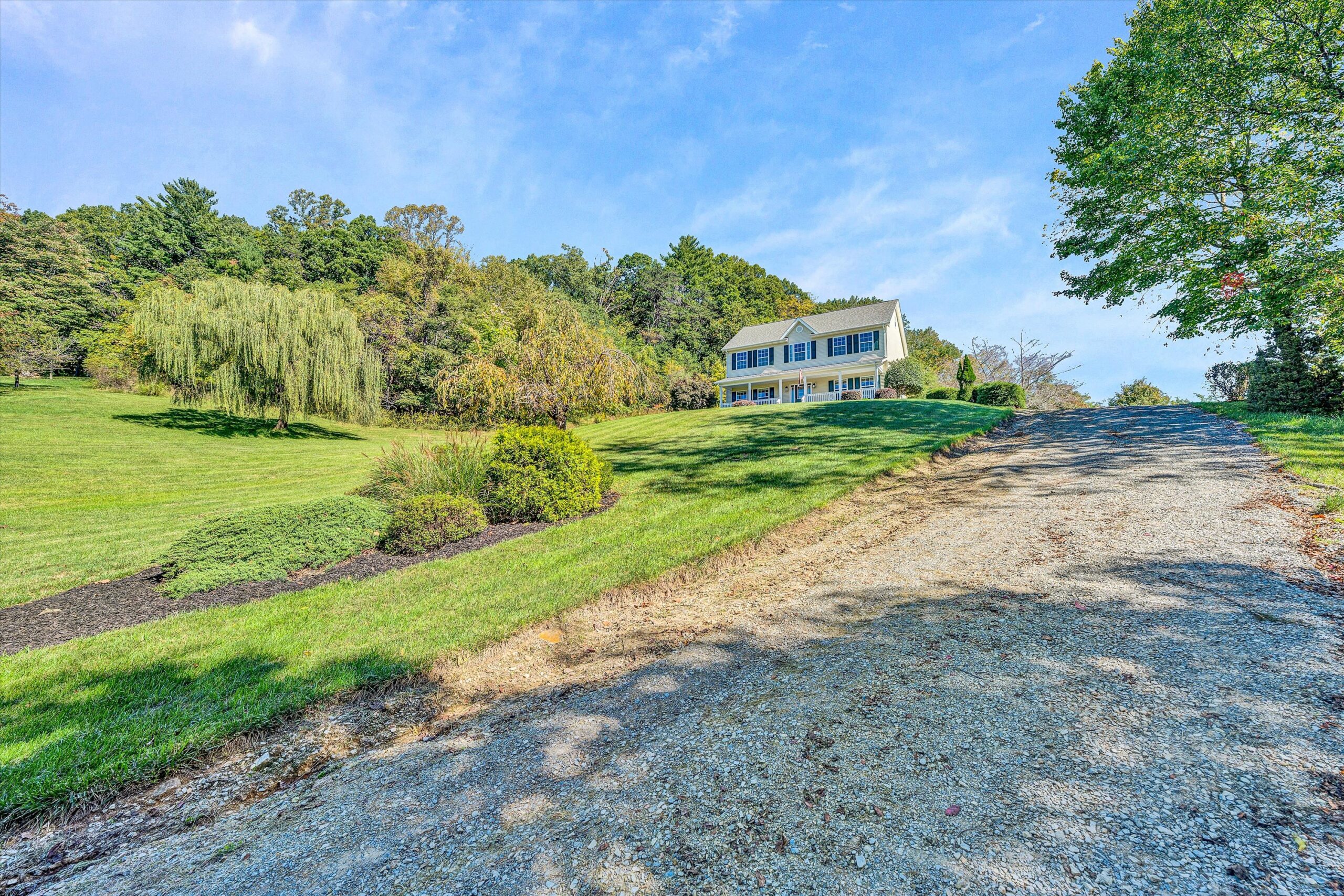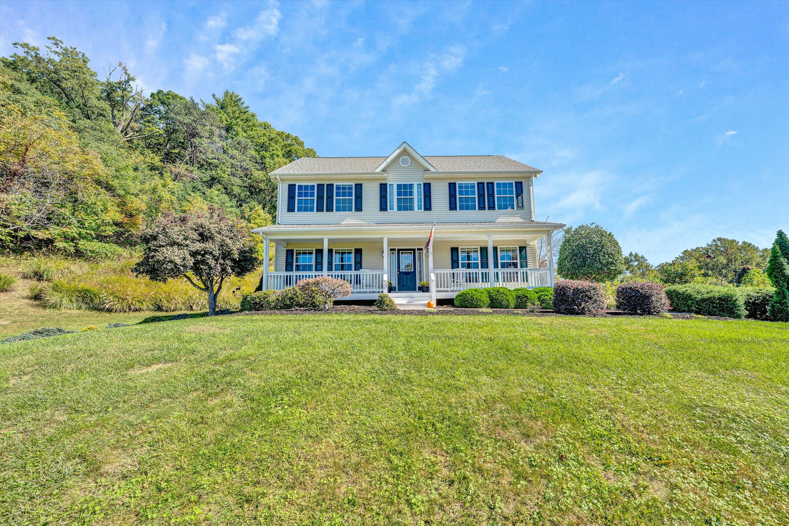 Incredible Custom 2 Story Home on 3.59 Acres with Long Range Views & Privacy! First time on the market & located in the Back Creek area in SWCO. Enjoy the breathtaking views as you sit back on the covered front porch that overlooks the large acreage in its park like setting. This home features 9’ ceilings, beautiful wide plank white oak hardwood flooring (locally sourced from Galax) & custom trim & molding throughout the entry level. A beautiful kitchen that includes all new appliances (except dishwasher) with oak cabinets. The kitchen opens to a spacious family room that includes a floor to ceiling stone fireplace w/ gas logs. Doors off the kitchen & Family room open to a private rear deck that has all new deck boards & hand rails. Upper level includes 3 bedrooms & an office/workout room that has been appointed as a 4th bedroom. The spacious primary suite with the attached bath boasts a soaker tub, stand up shower & large walkin closet with dual entrances. The full bath off the hallway was recently renovated & has new vanity, tile flooring, lighting & shower faucets. The full floored attic with tall ceilings creates exceptional storage space & easily accessed in the hallway with dropdown steps. The lower level has a finished den area & the unfinished basement includes a full walkout basement with a shop, extensive shelving & plenty of room to expand finished space (rough plumbed for a 4th bath). The property has extensive landscaping, brick paver sidewalk and a lower field area that provides more space to add a shop, garage or recreational playground. This home feels like you are out in the country with its peaceful setting and abundance of wildlife yet its only minutes to all the local conveniences. This property is rare and has it all! Come see it today!