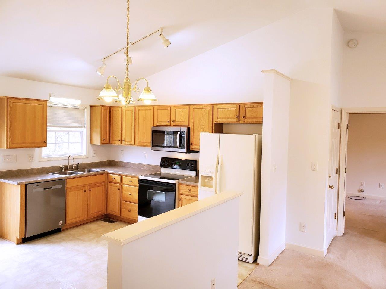 Welcome to this charming, maintenance-free 3-bedroom, 2-bathroom ranch home located in the heart of Vinton. This beautiful property offers an open & spacious floor plan, featuring vaulted ceilings in the great room & kitchen. The primary suite is a true retreat, offering a private en-suite bath and a generous walk-in closet for ample storage. The open kitchen is perfect for both cooking & entertaining and warm oak cabinetry & access to spacious rear deck overlooking a private setting. A washer & dryer closet off the kitchen (washer & dryer included) & two additional pantry closets ensure plenty of storage space. Two additional bedrooms & a full bath on the entry level provide plenty of room for family or guests. The large, walk-out unfinished basement offers endless possibilities with roughed-in plumbing for an additional bathroom & space to expand or create your dream basement. This home is well-maintained & situated in an ideal location in Vinton, close to everything you need. Don’t miss the chance to make this your new home!