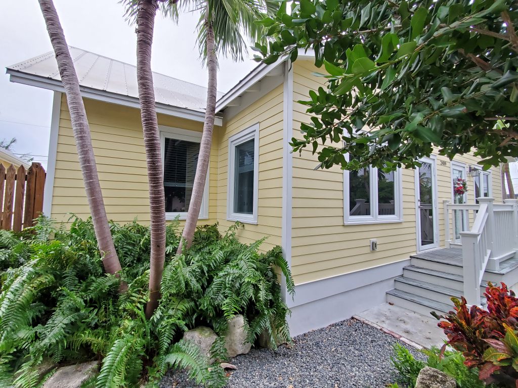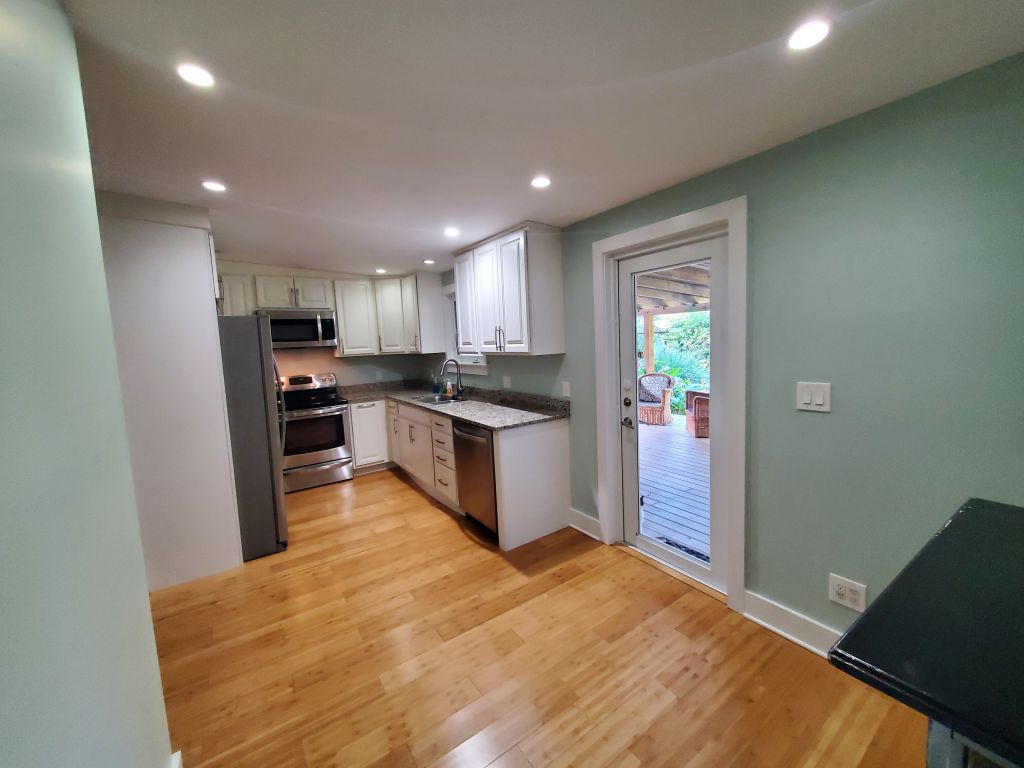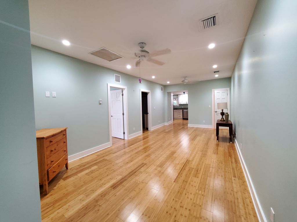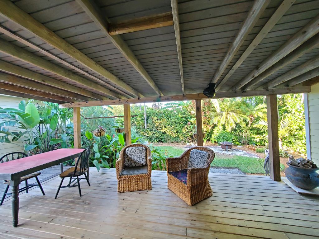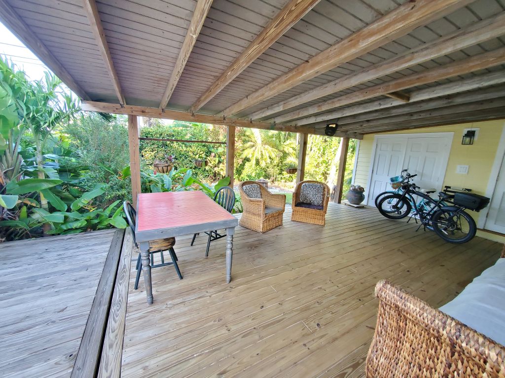 2 bedroom, 2 bath apartment 1,000± SF of living space with large covered deck overlooking private yard. Perfect for work from home using one Bedroom for office. This apartment has been recently completely renovated. Stainless steel appliances, bamboo floors, hurricane windows and doors, and off-street parking. New HVAC. No pets, no smoking. One year lease. $2,950 month.