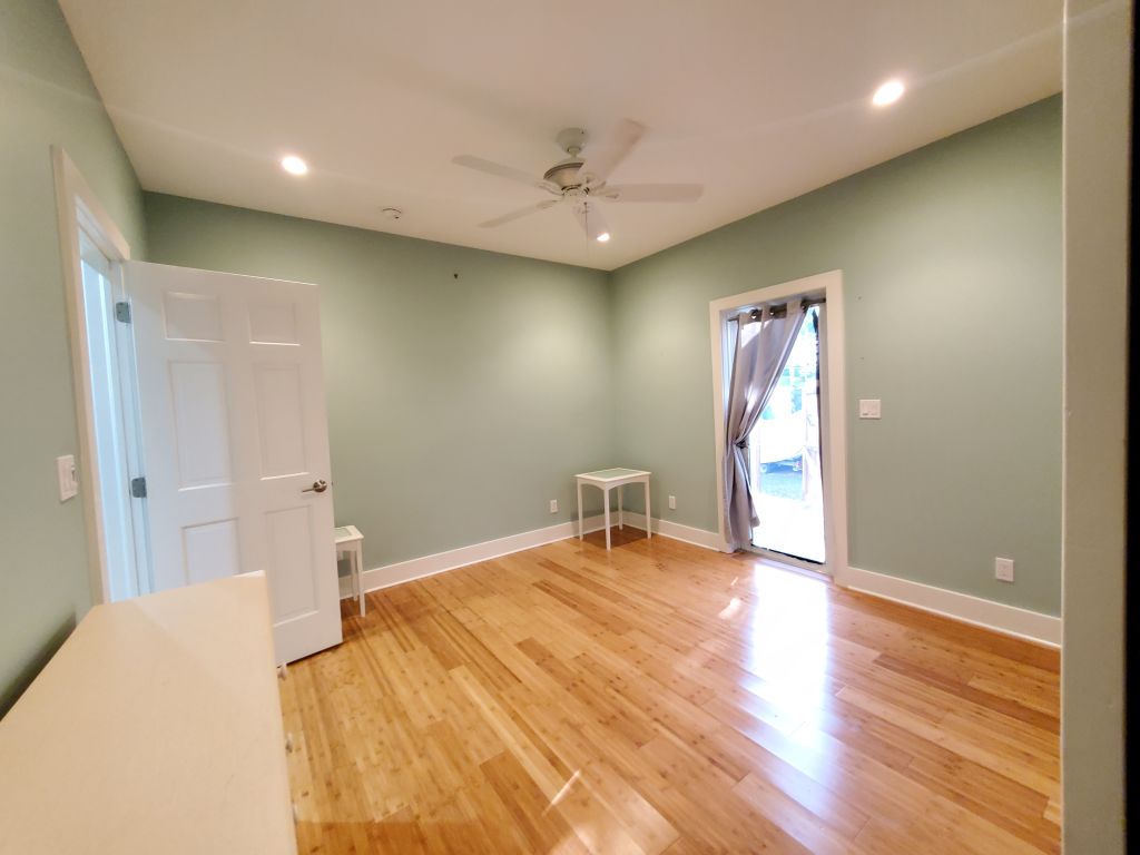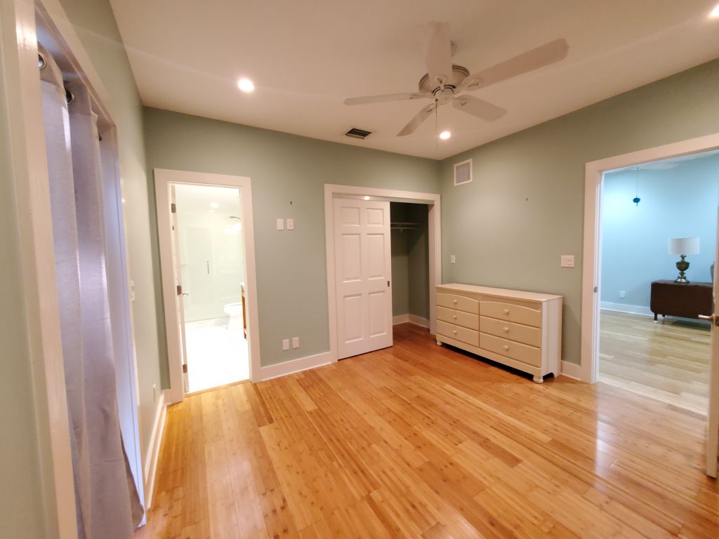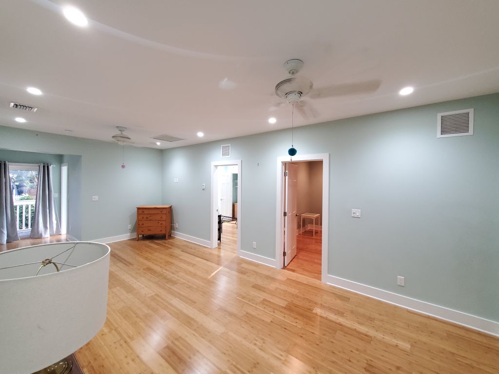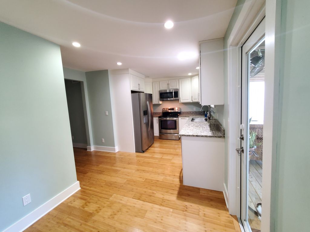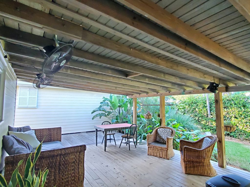 2 bedroom, 2 bath apartment 1,000± SF of living space with large covered deck overlooking private yard. Perfect for work from home using one Bedroom for office. This apartment has been recently completely renovated. Stainless steel appliances, bamboo floors, hurricane windows and doors, and off-street parking. New HVAC. No pets, no smoking. One year lease. $2,950 month.